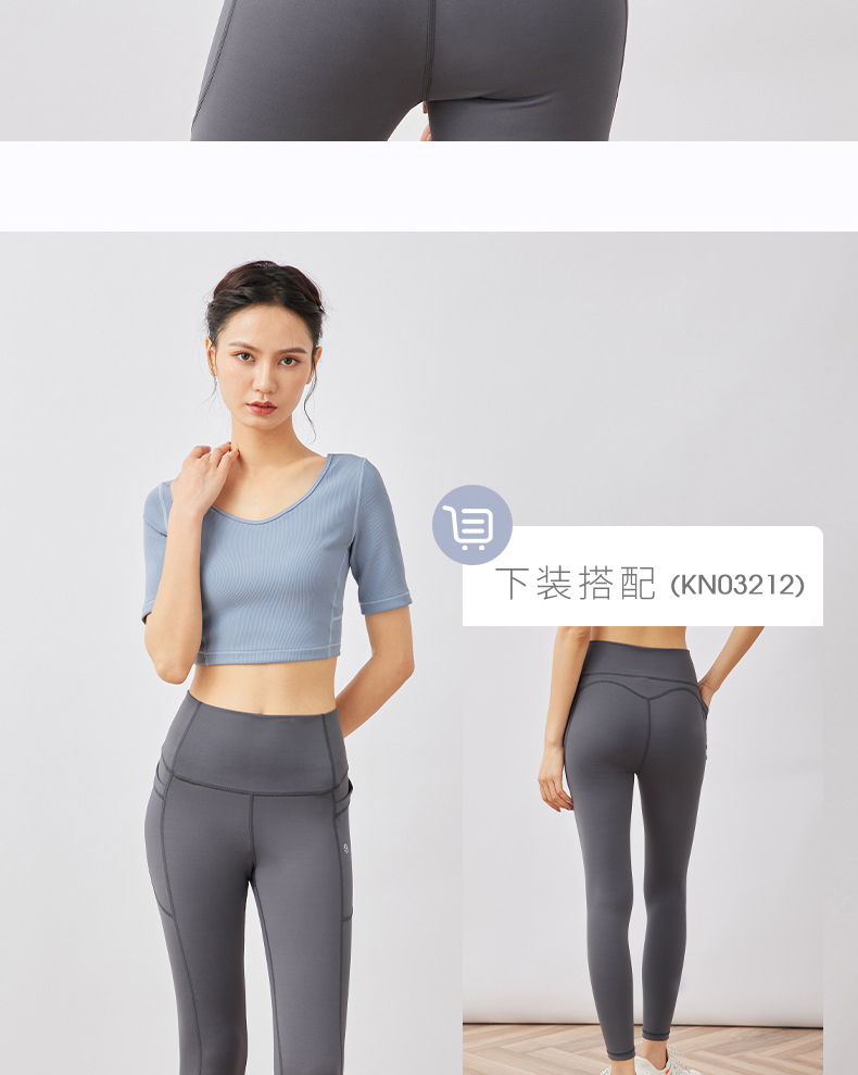 卡益瑜伽运动五分袖KY03928不可插胸垫