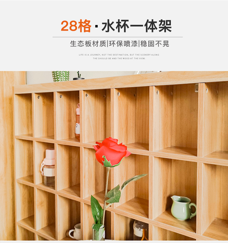 28格水杯一体架幼儿园小空间木制简约落地水杯一体架