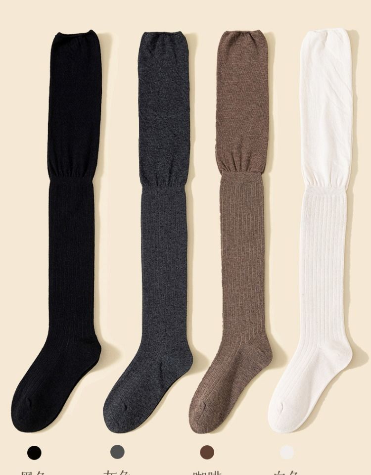【3双装❗️过膝堆堆袜】过膝堆堆与众不同,面料舒适,平滑缝头,不易起球,柔软细腻更亲肤,长筒堆堆袜女高筒纯色拼接ins潮穿搭女士袜子QQ