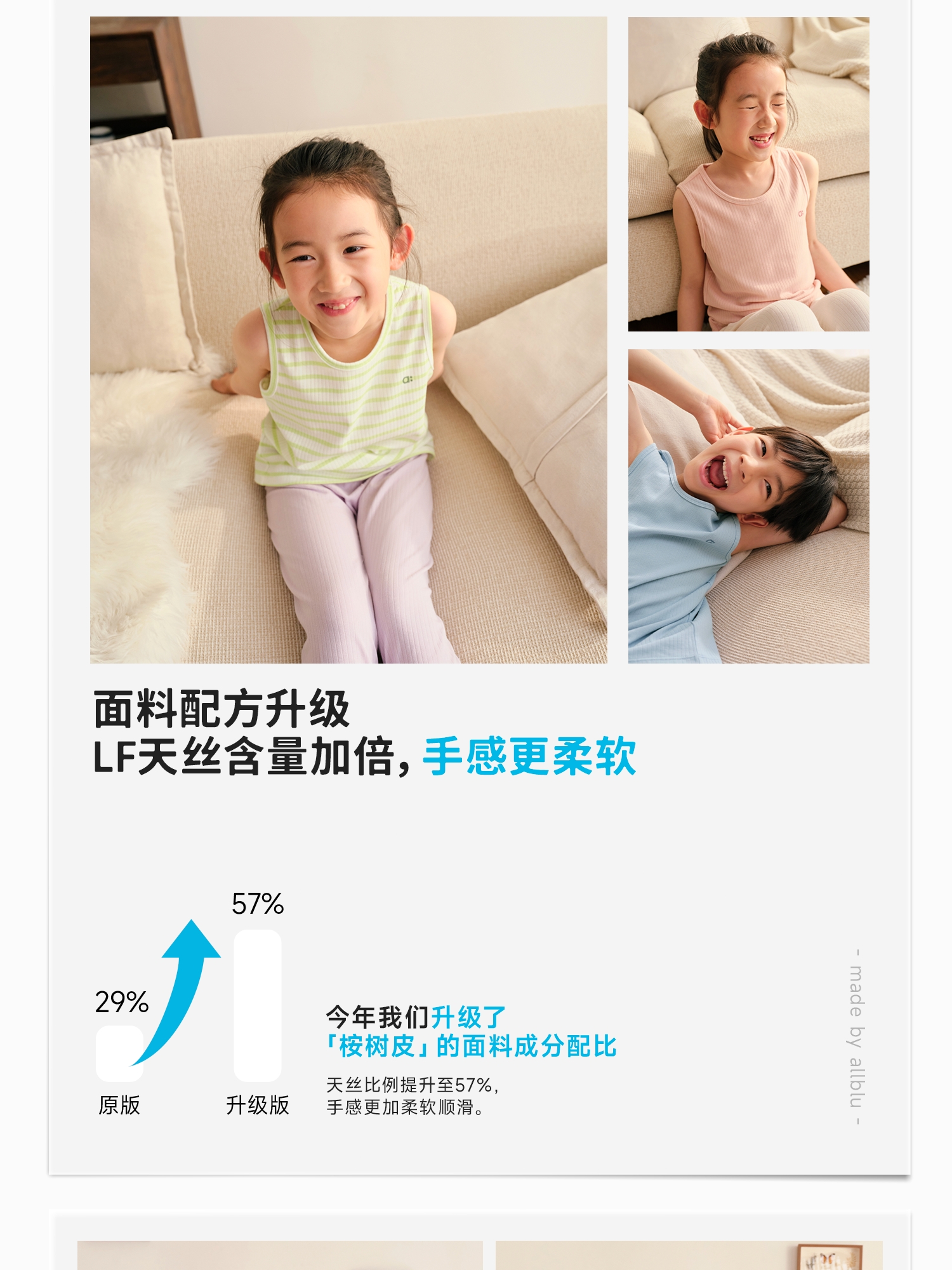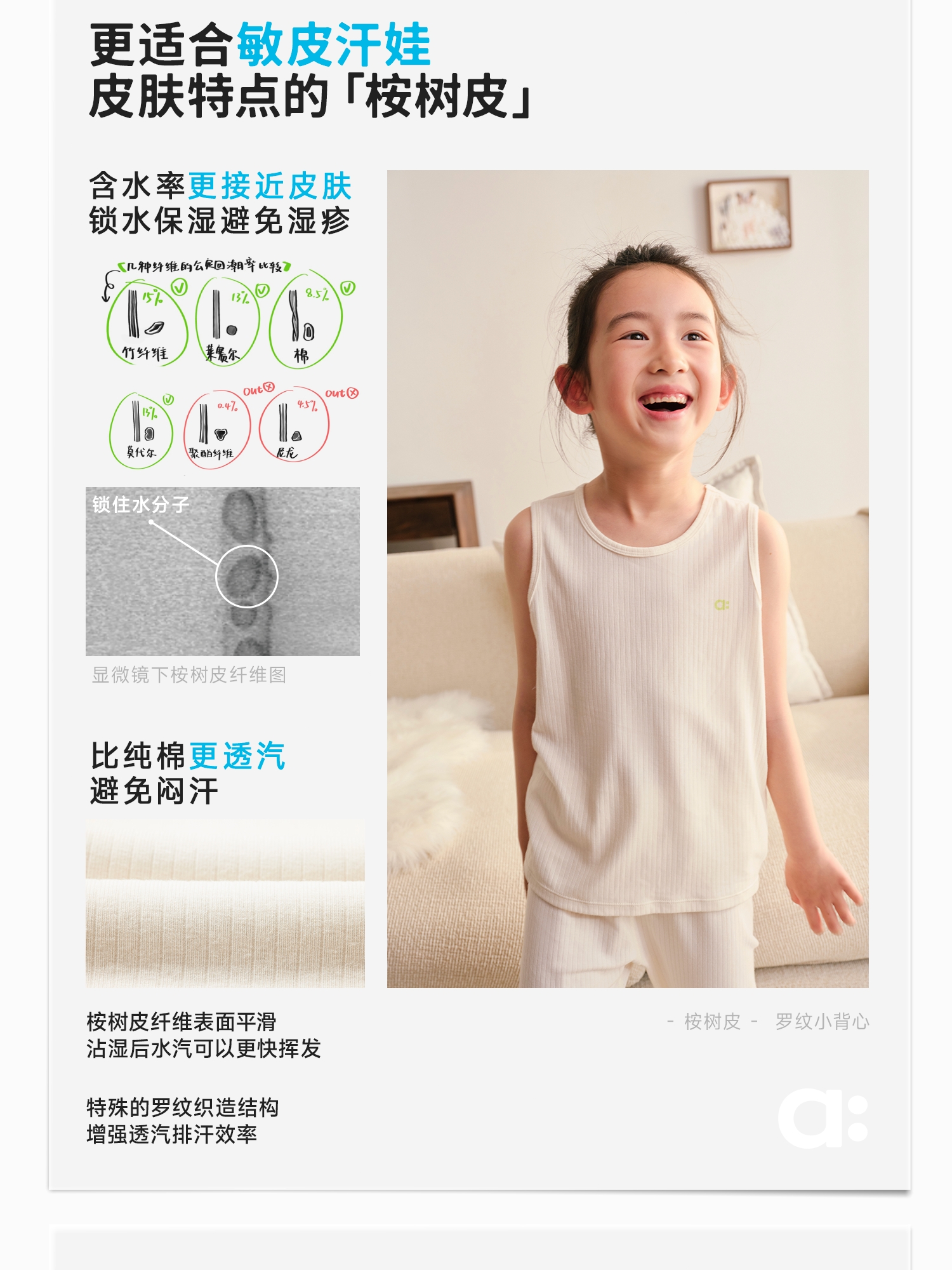 【王牌桉树皮】幼岚童装透汽罗纹小背心24秋季新款儿童家居背心