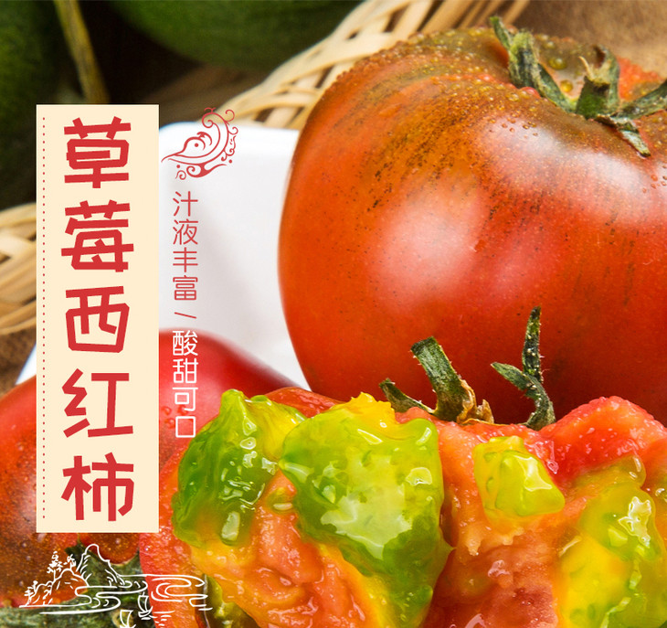草莓西红柿来自四川攀枝花,这里的阳光充足、昼夜温差大,部分土地是碱性土壤,收获的草莓西红杮也才有更丰富的微量元素和营养价值!草莓西红柿含有胡萝卜素、维生素,还有丰富的果胶、矿物质和膳食纤维,亦果亦蔬,清洗后直接生吃当水果酸甜爽口,作为健身前后的能量补充也是不错的选择。