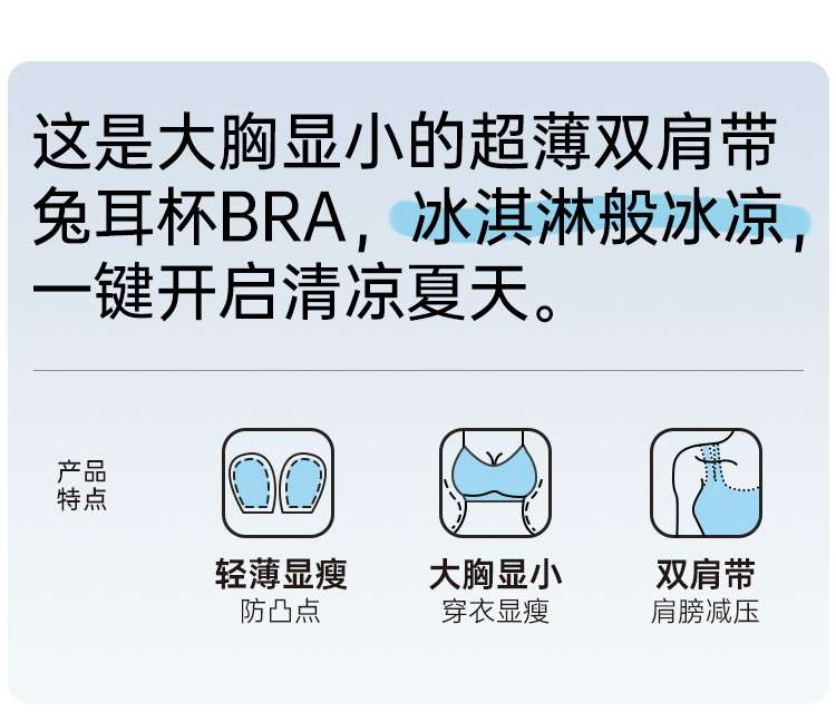 D1-【B-D杯】【超薄兔耳杯 粉底液隐形内衣】润微14.5cm加高侧翼 夏季薄款大胸显小无痕防下垂文胸 摩登冰肌/摩登轻影/氧气夏沫