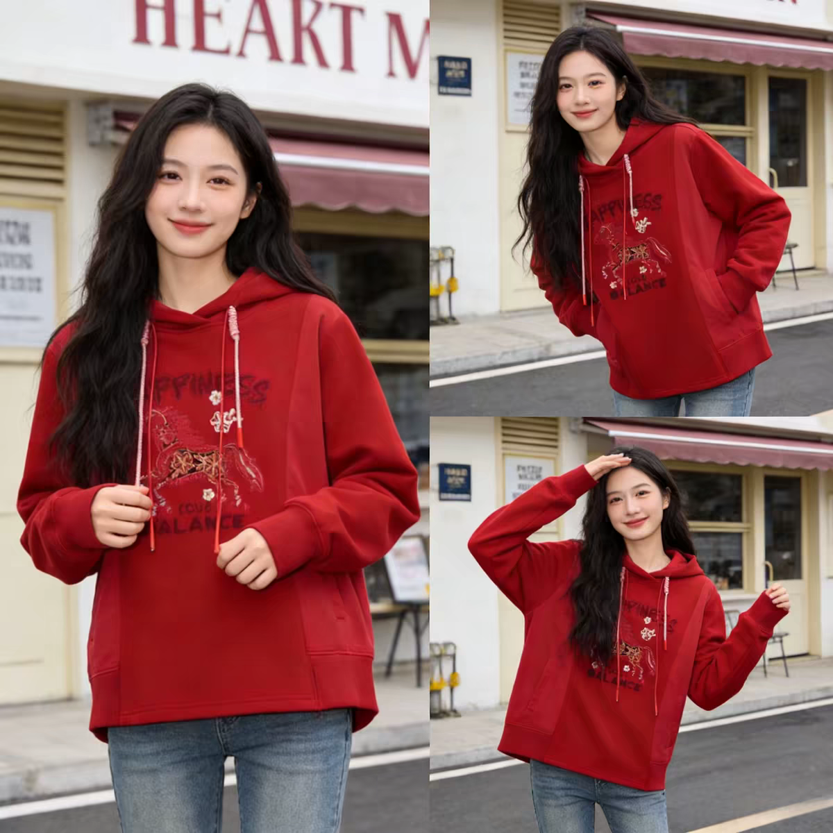 ✅休闲连帽卫衣款式,上身可以很好地包容身材,完全不挑人,实穿性很好,日常也很好搭配,胸前的骏马刺绣,寓意超赞。