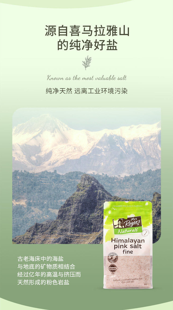 [屁侠推荐]Mrs Rogers新西兰喜马拉雅 天然无添加 丰富矿物质 高营养低盐度 玫瑰粉细盐1kg/包