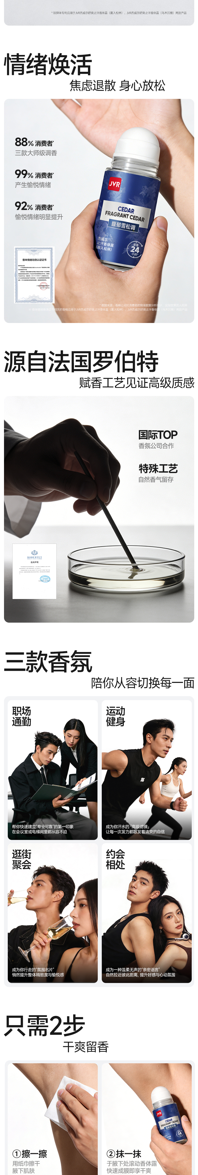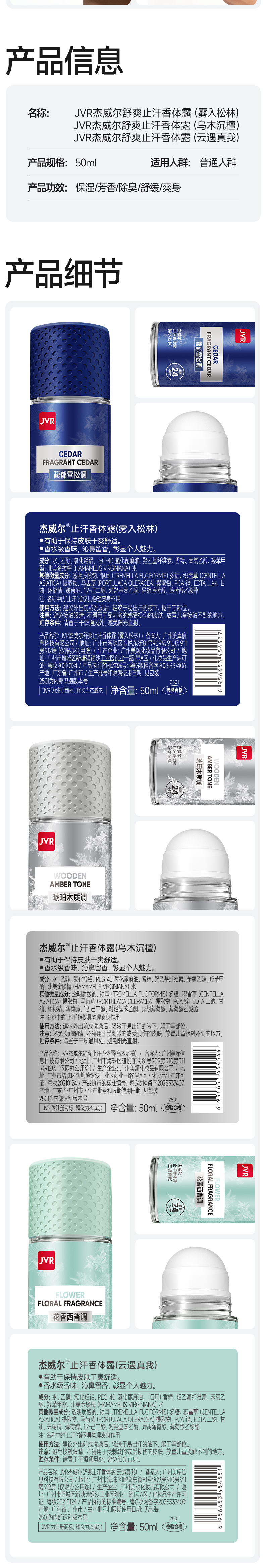 杰威尔止汗露腋下止汗滚珠走珠腋窝去异味除汗臭干爽香体露男