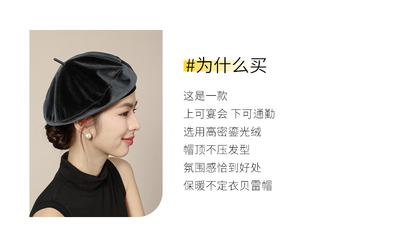 [屁侠推荐]颗里鎏光绒贝雷帽 不挑衣贝雷帽 防寒保暖 适合多种脸型