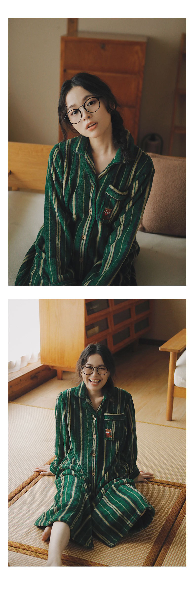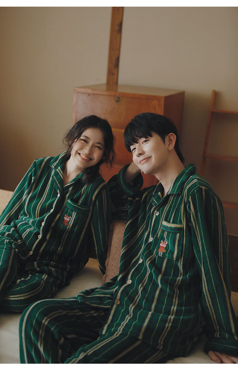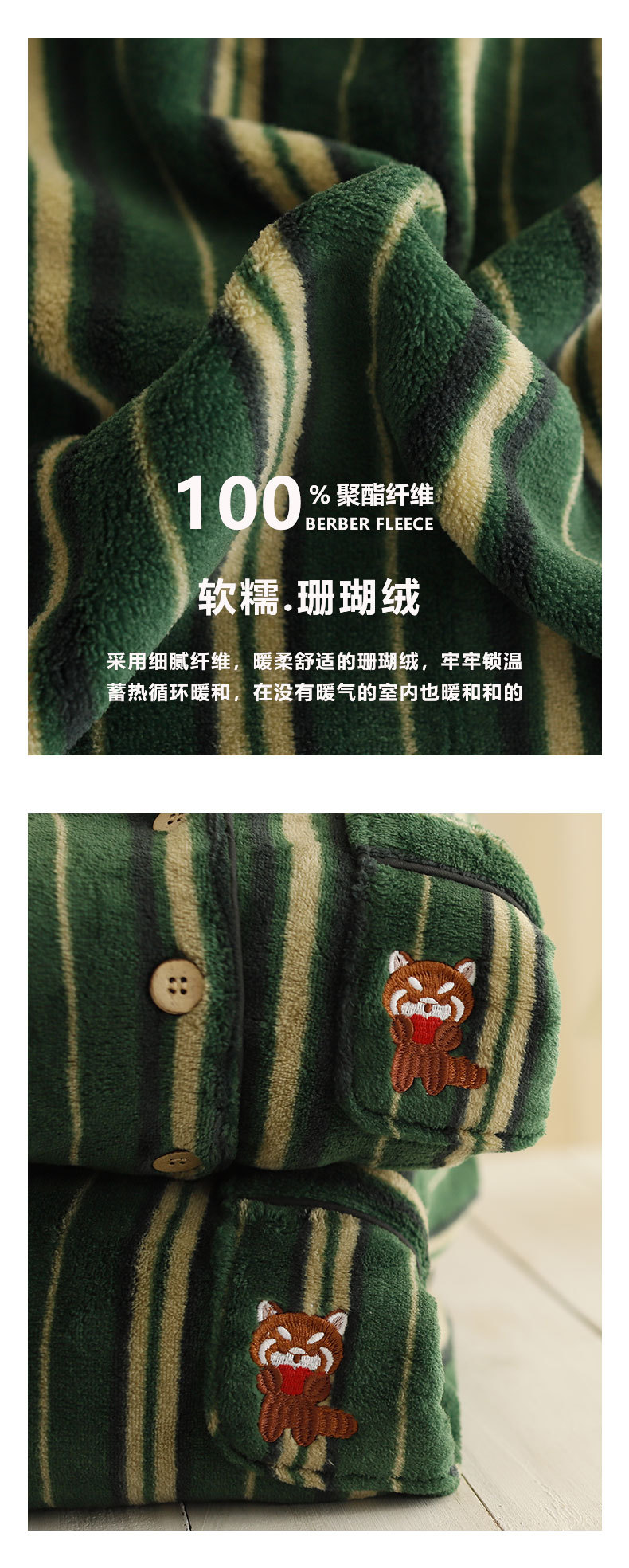 【断码特价】卡通小熊猫珊瑚绒情侣睡衣女冬季秋冬款男士加厚保暖家居服睡袍