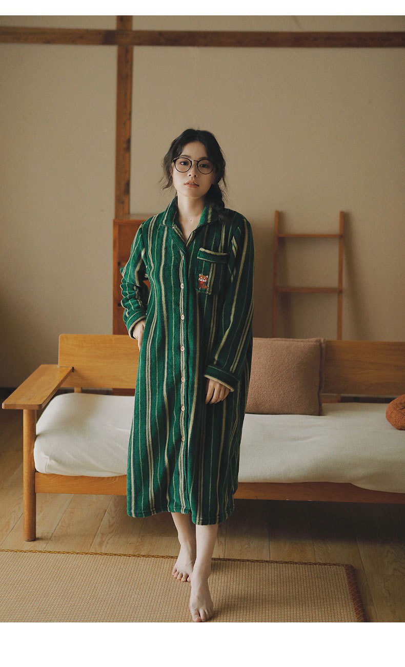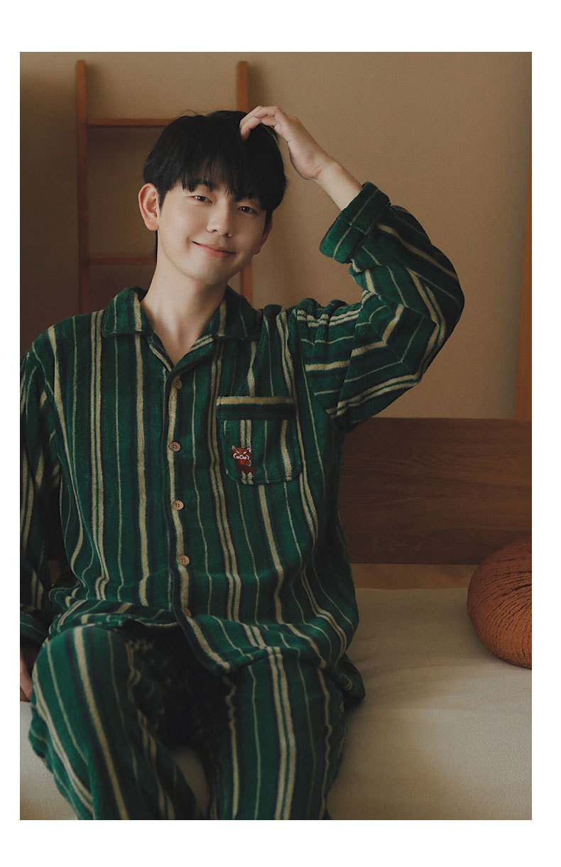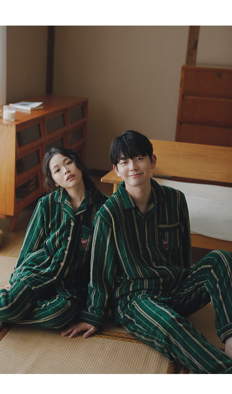 【断码特价】卡通小熊猫珊瑚绒情侣睡衣女冬季秋冬款男士加厚保暖家居服睡袍