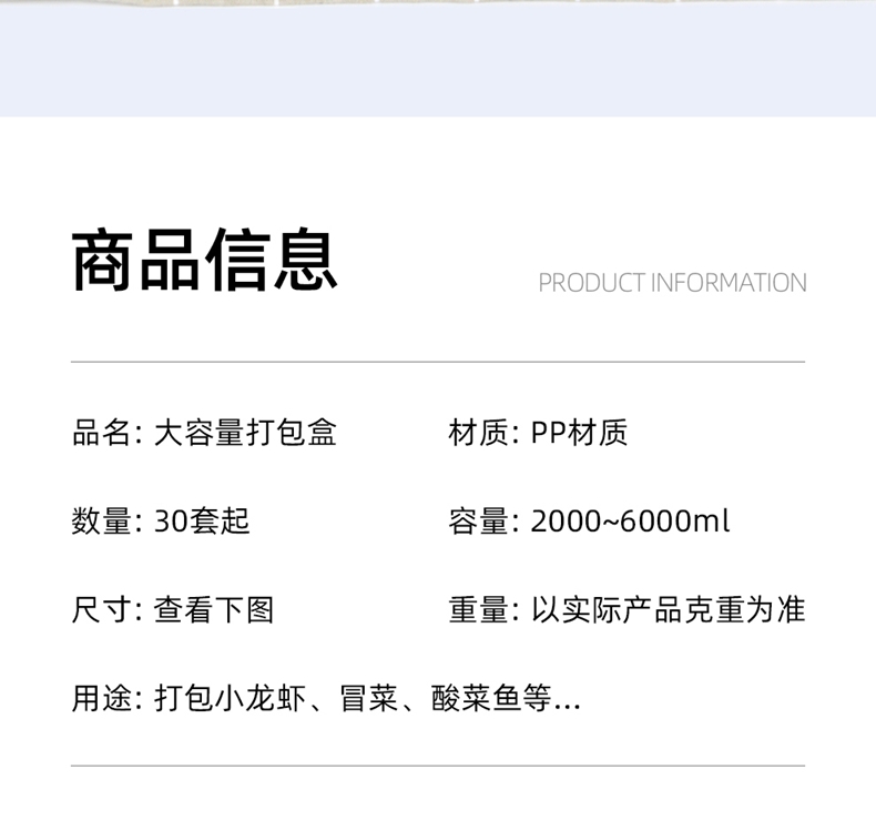 喇叭花2000-3000ml一次性打包碗香辣蟹酸菜鱼大汤碗水煮活鱼碗外卖盒带盖