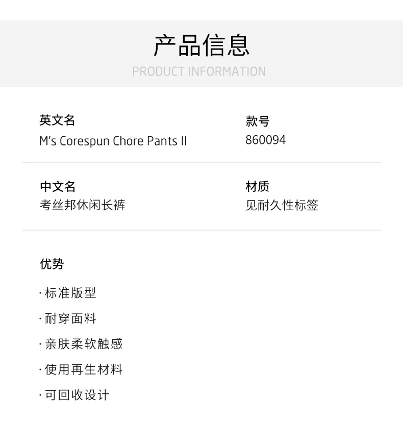 HOUDINI胡丁尼Corespun Chore考丝邦26户外男春夏新休闲工装长裤 860094