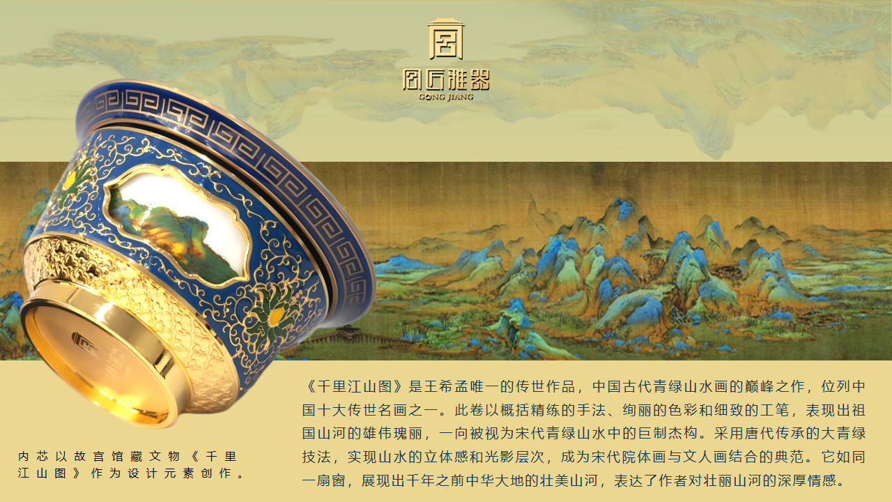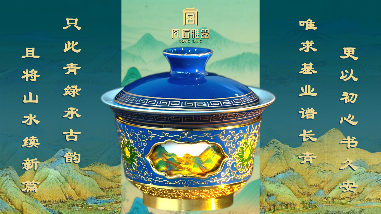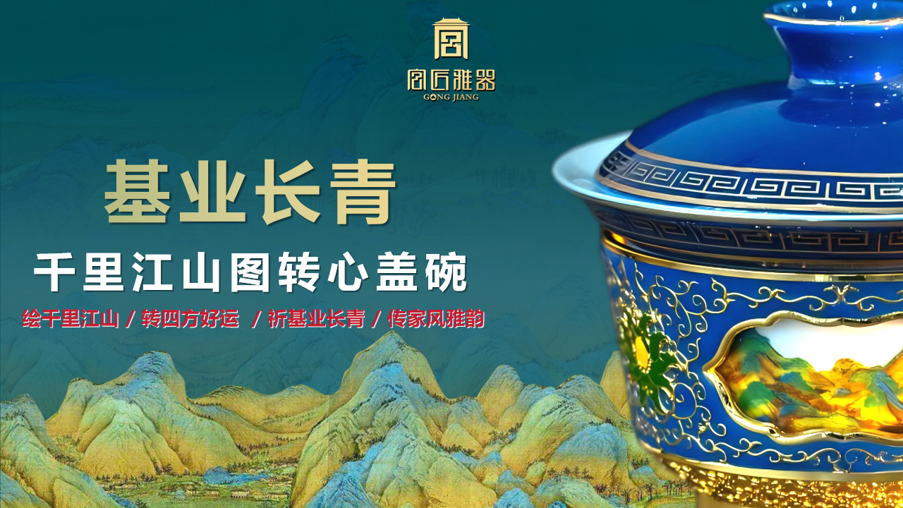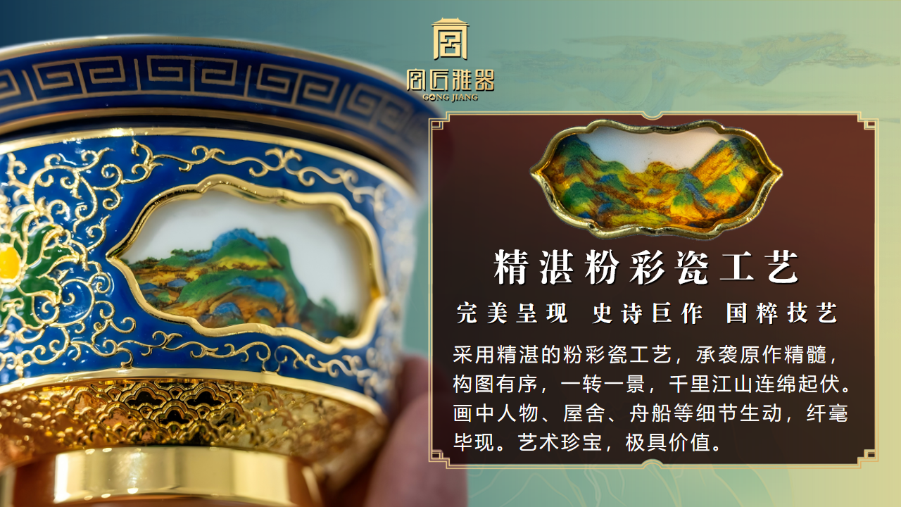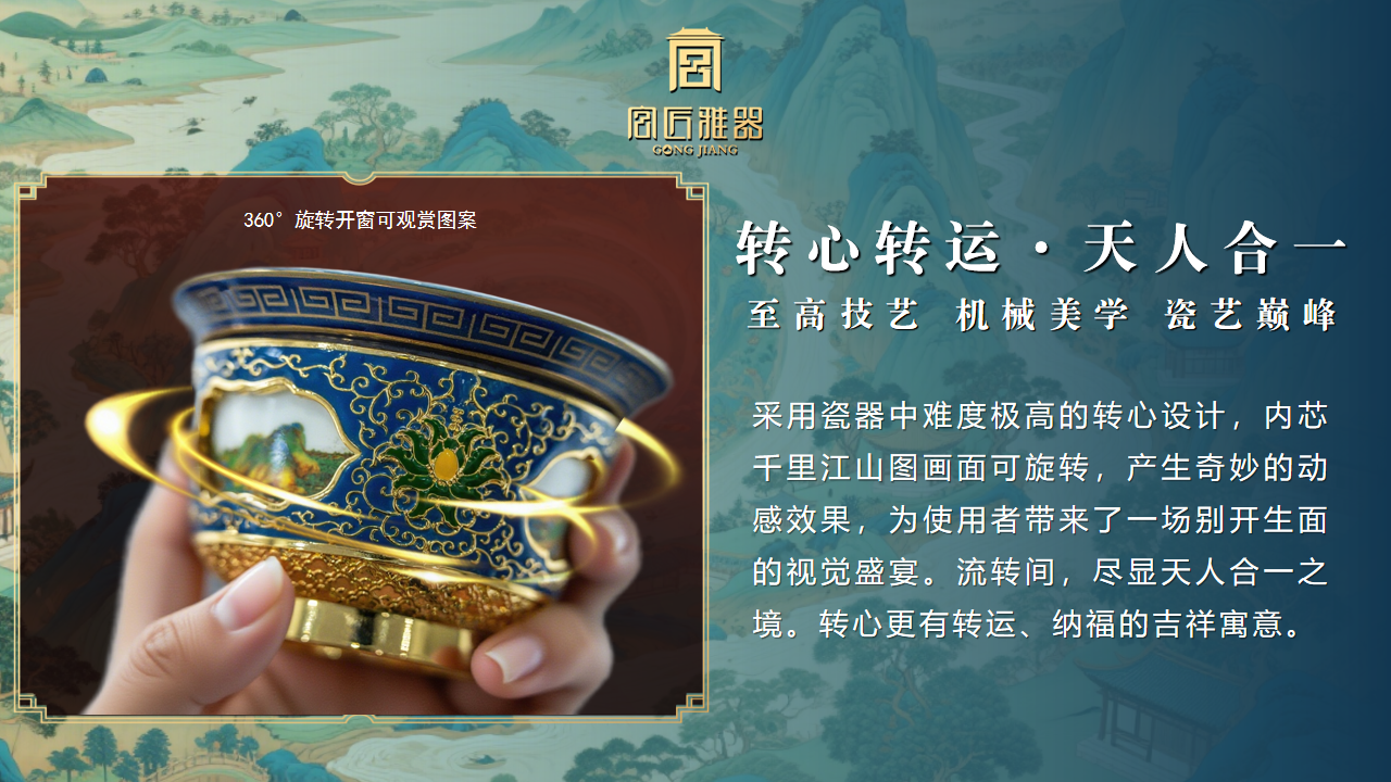 《千里江山图》转心盖碗 珐琅彩工艺 360°旋转开窗可观赏图案