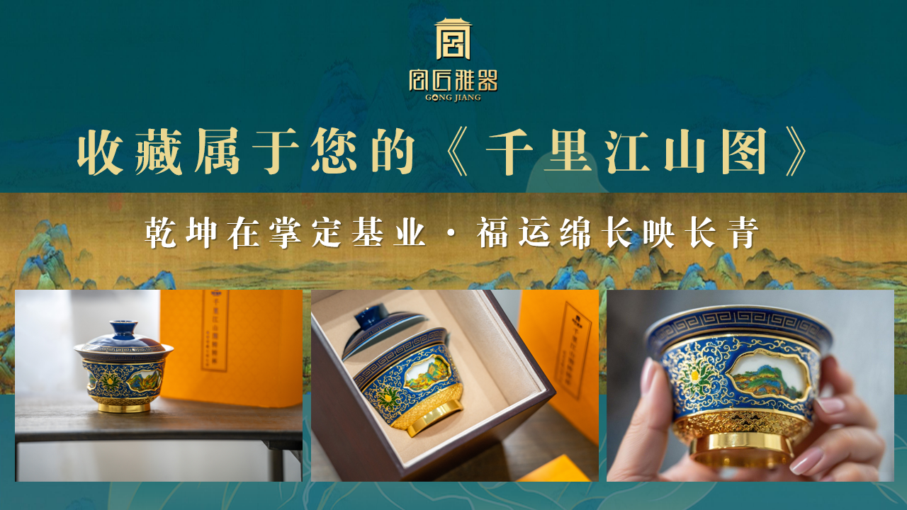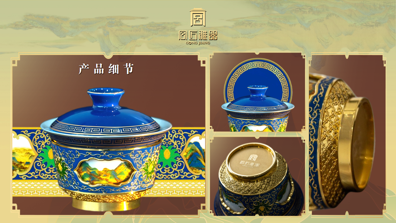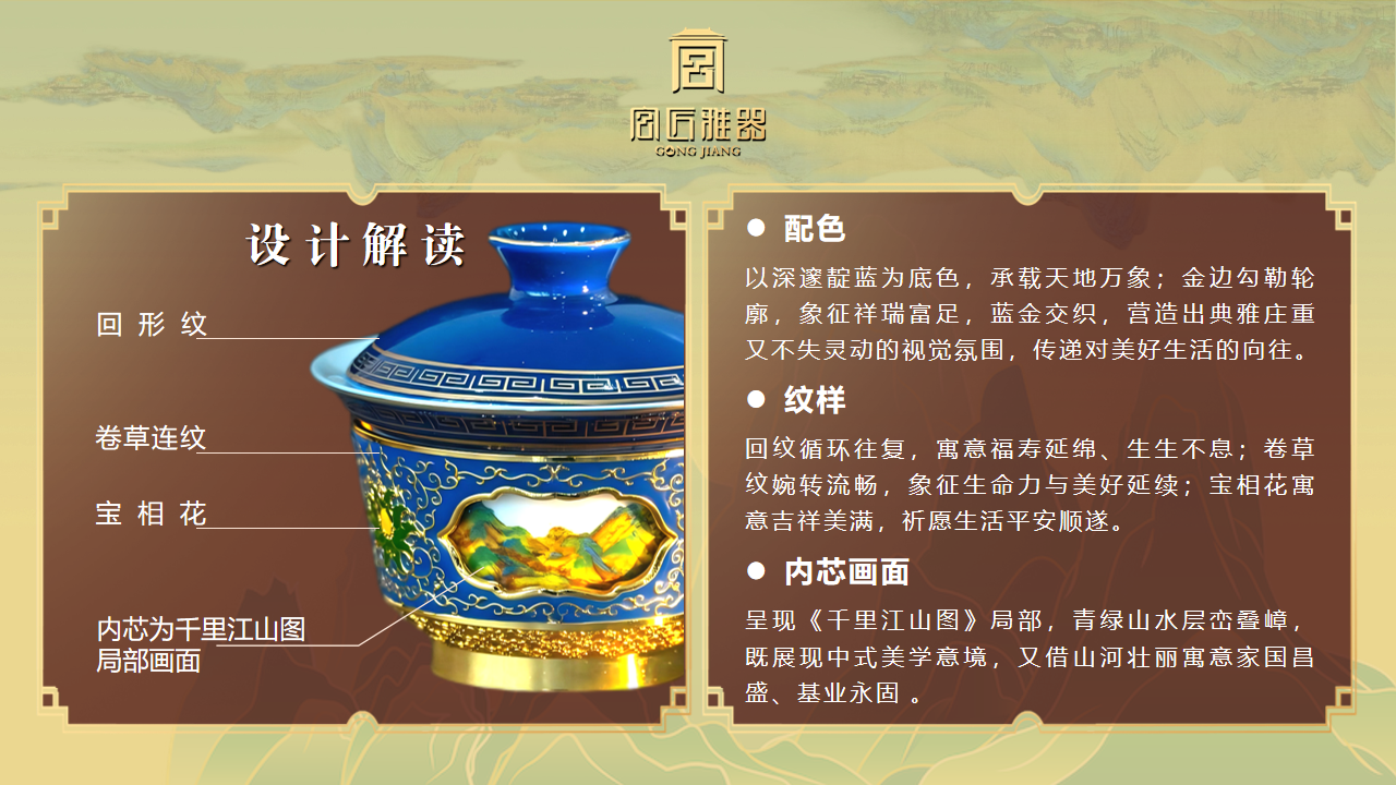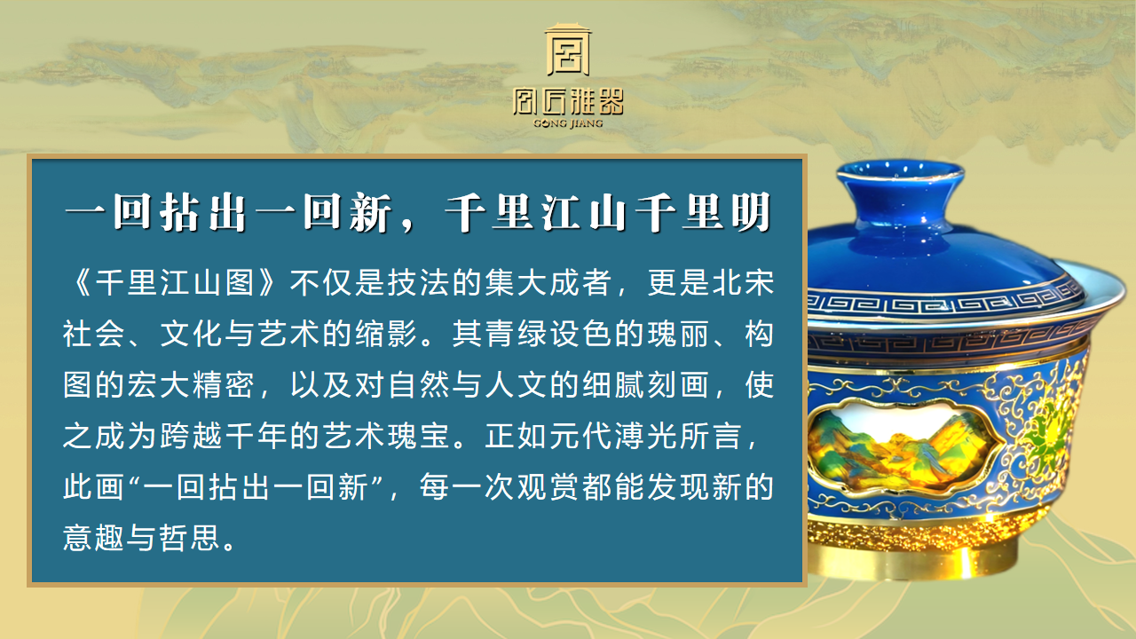 《千里江山图》转心盖碗 珐琅彩工艺 360°旋转开窗可观赏图案