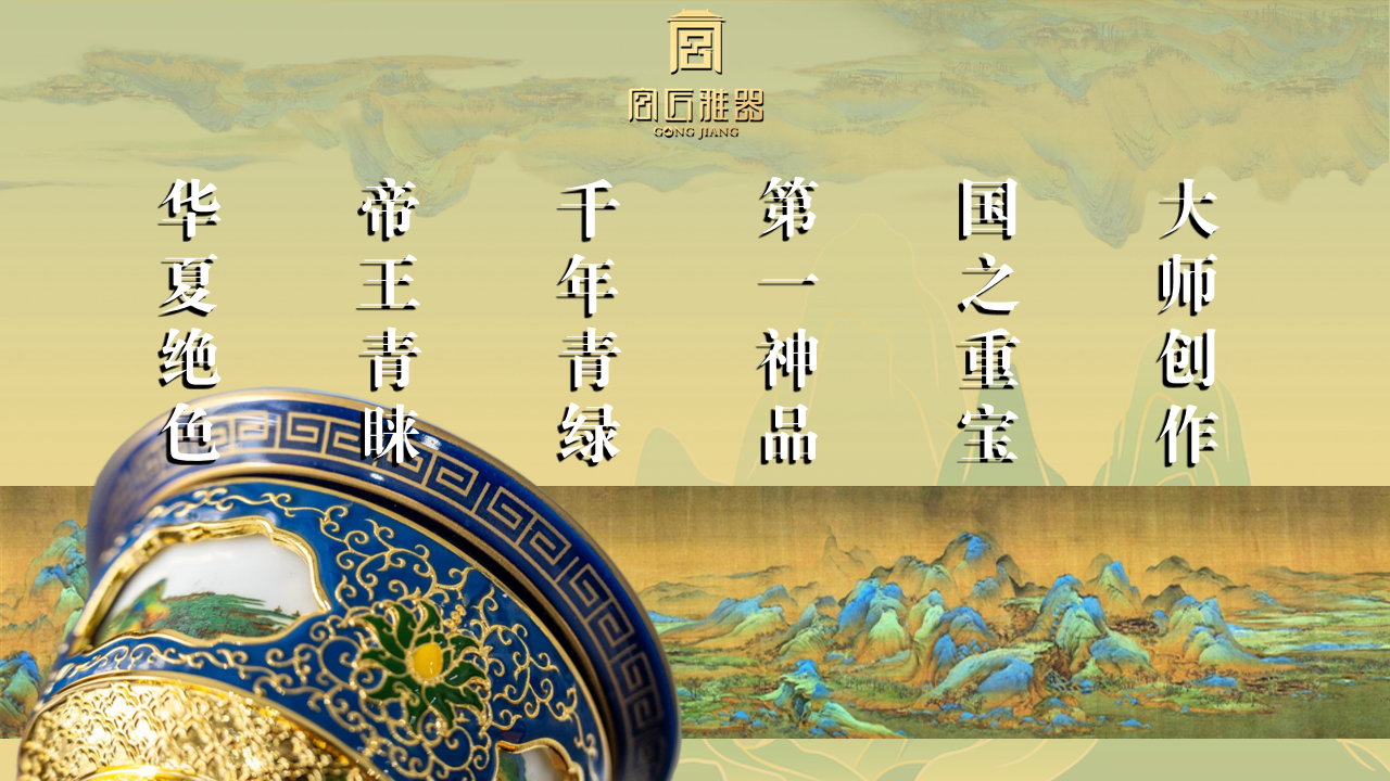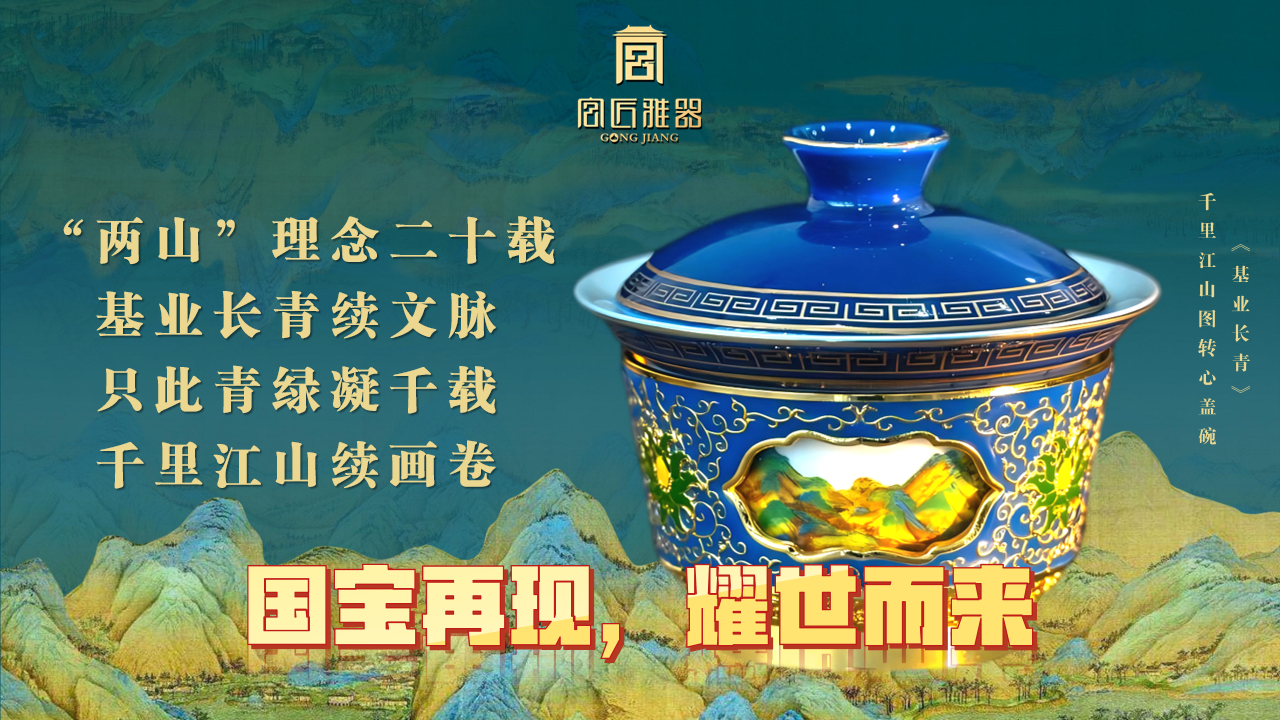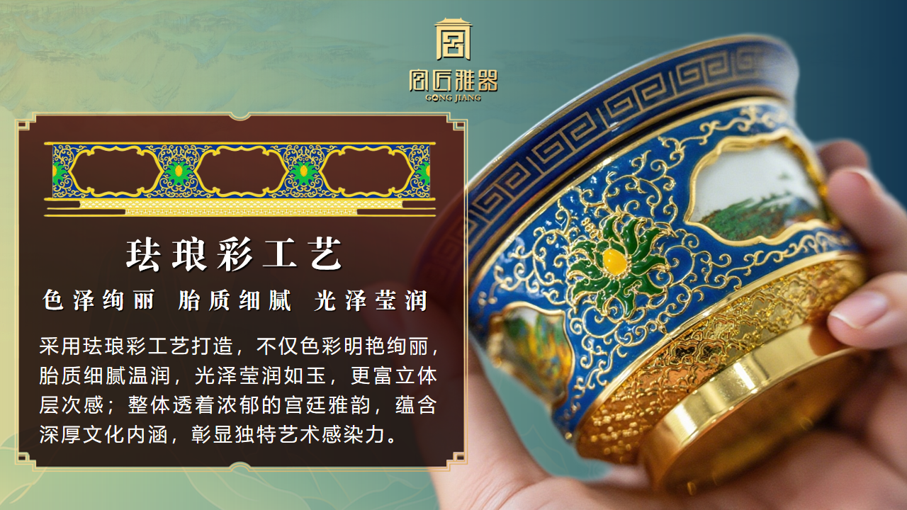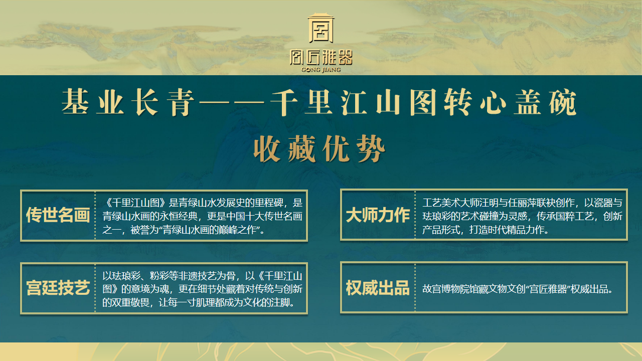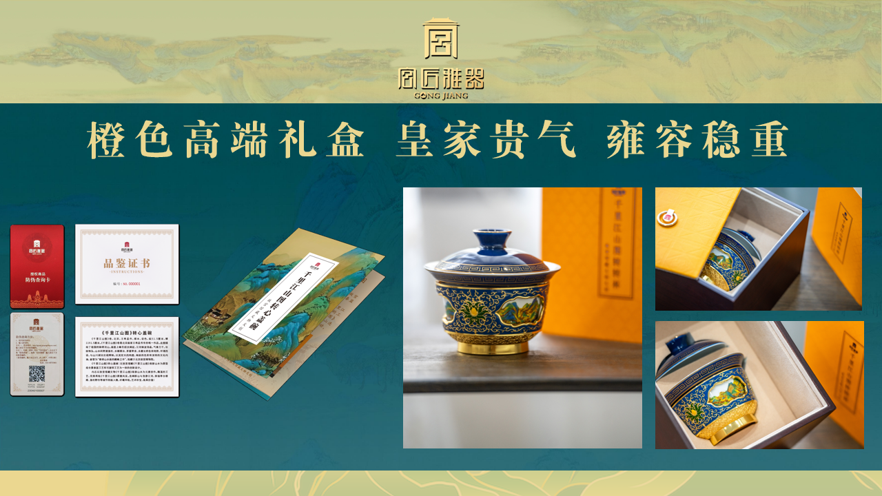 《千里江山图》转心盖碗 珐琅彩工艺 360°旋转开窗可观赏图案