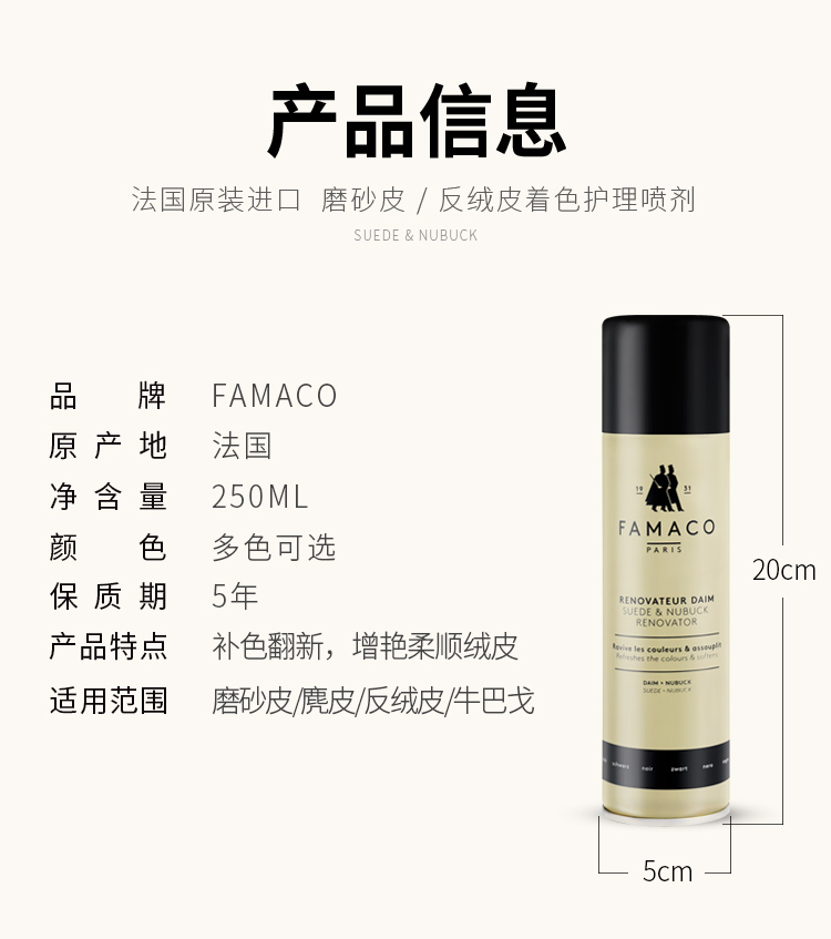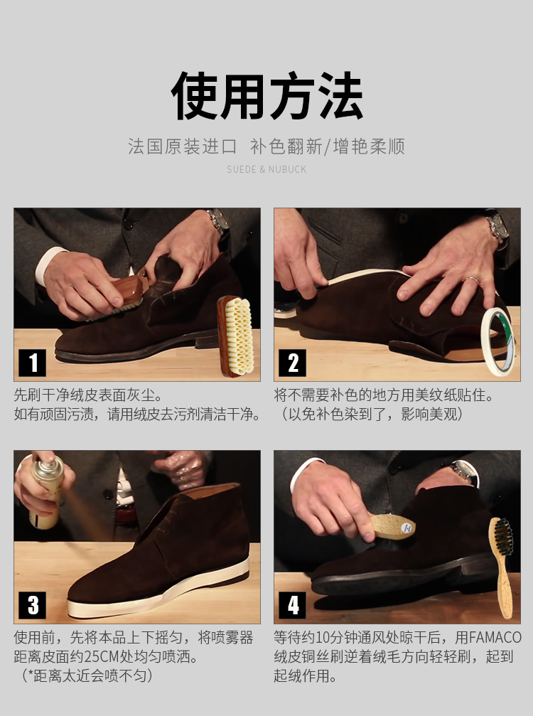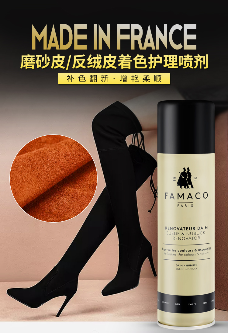 法国进口Famaco磨砂皮 反绒皮着色喷剂补色翻新0008