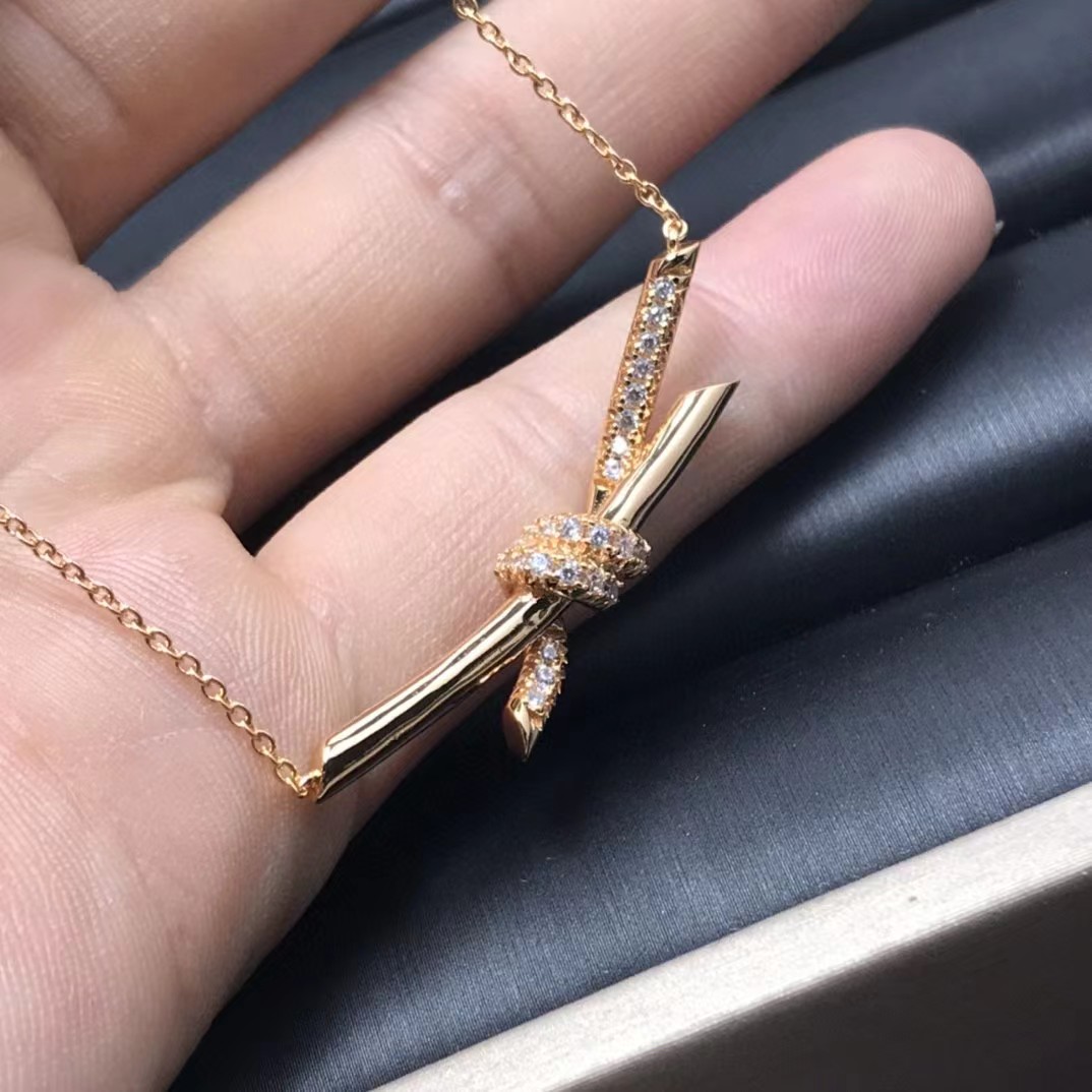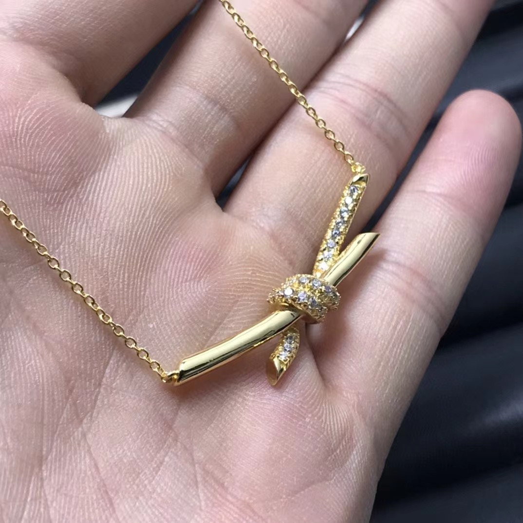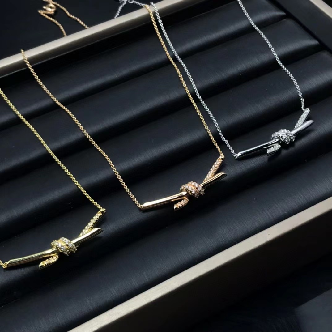 新品纽结带钻项链,钟楚曦同款,如意结钻石项链,金属丝般缠绕,寓意绳结·永结同心,甜美与jing致的化身恍若蝴蝶结,简约又羔级,搭配裙子衬衫都合适哦!