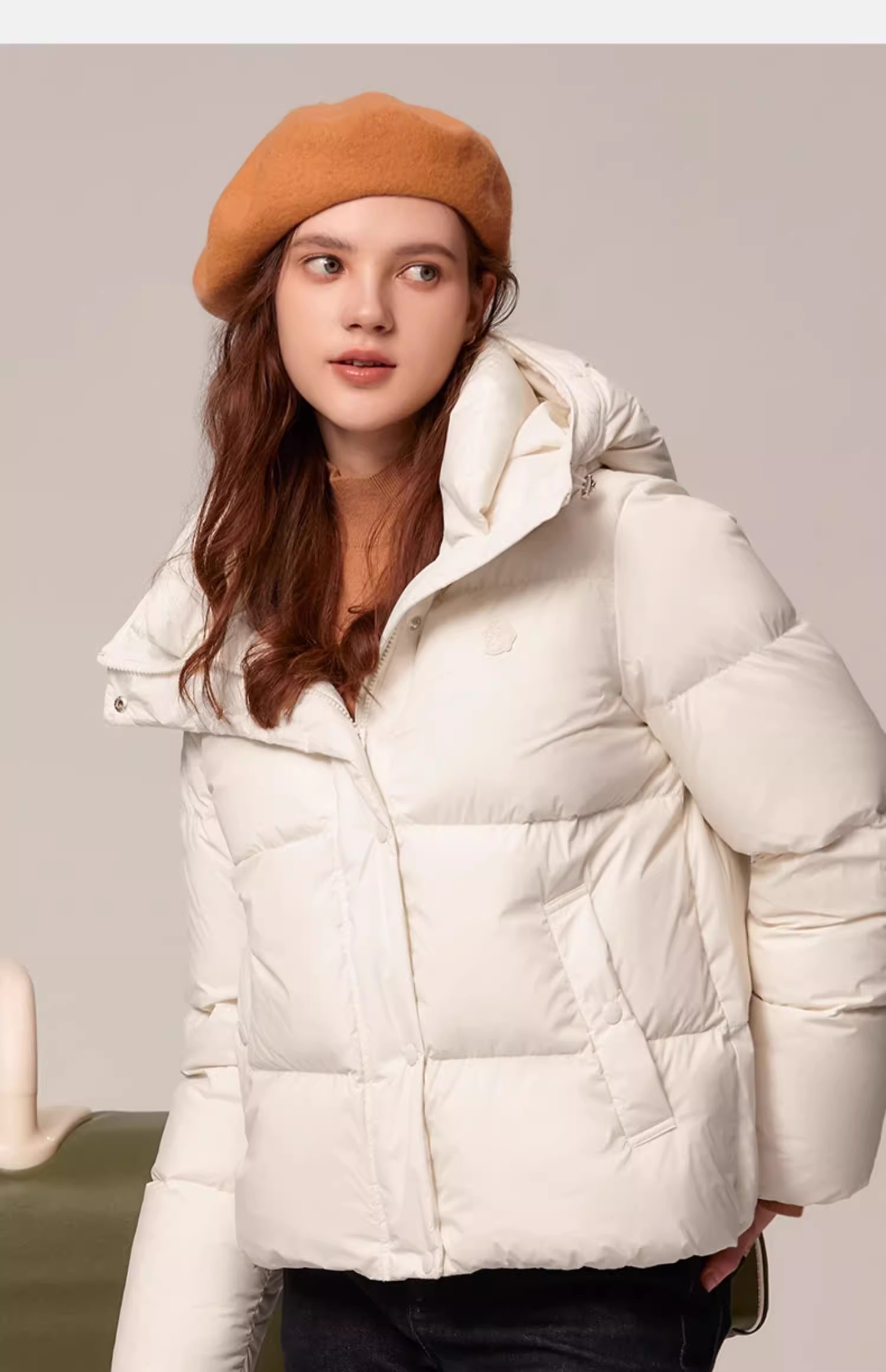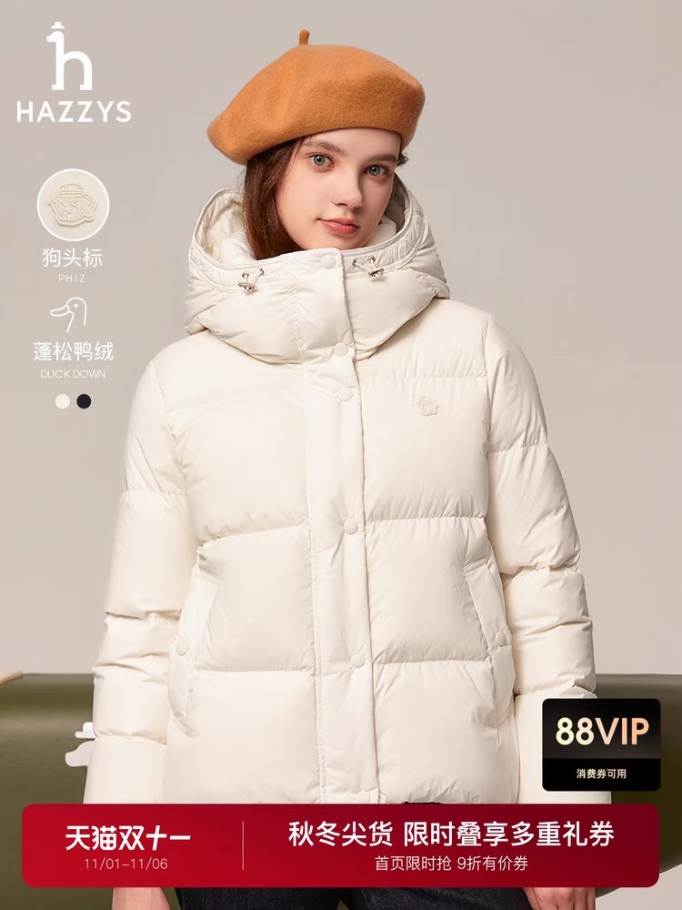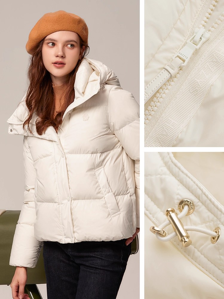 贝壳三 防泼水宽松短款轻薄羽绒服女防风纯色连帽外套C110806