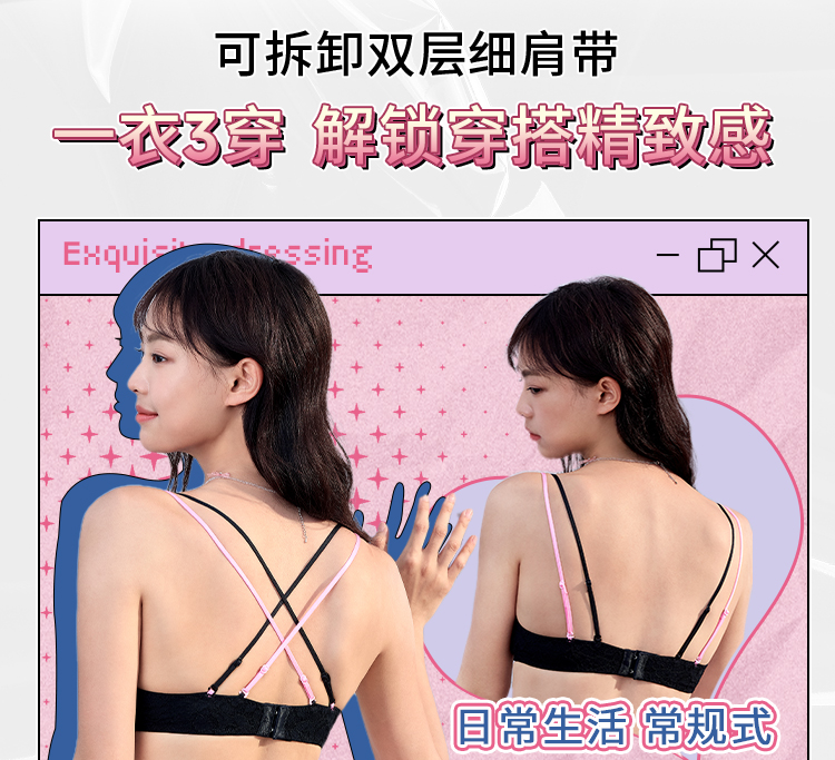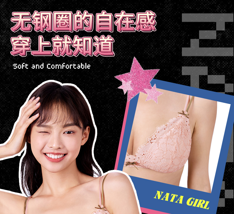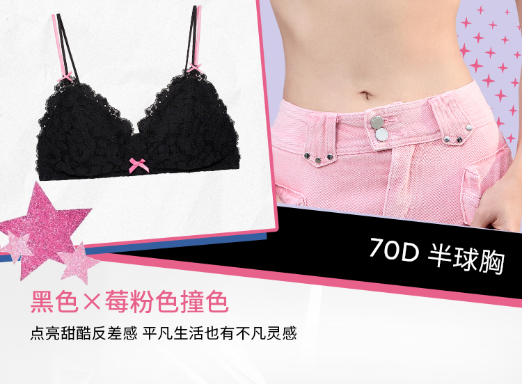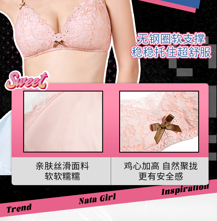 【积分兑换】[慕斯甜心无钢圈]显小无钢圈三角杯可拆卸肩带聚拢大胸文胸胸罩