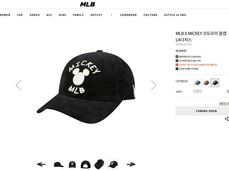 M1B N.Y 米老鼠联名款 灯芯绒刺绣棒球帽