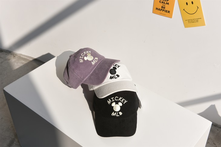 1.迪斯尼米奇米老鼠联名款,3色立体刺绣 灯芯绒棒情侣球帽