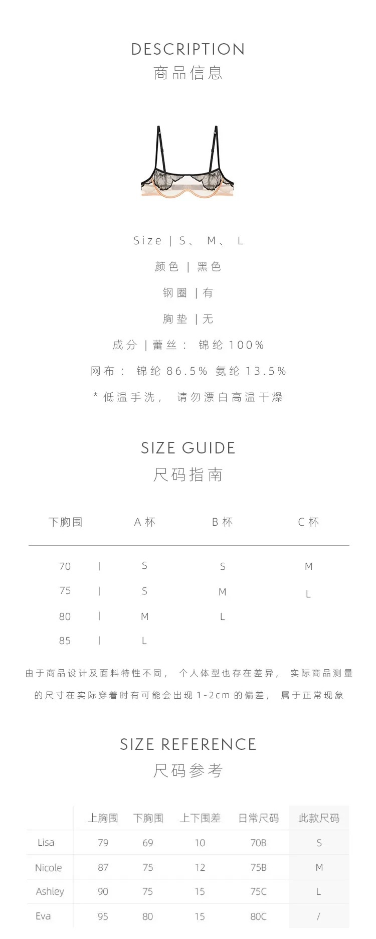 Her Senses|极织 12B155YN 列维斯蕾丝连钢圈文胸 [ 黑BK01 ]