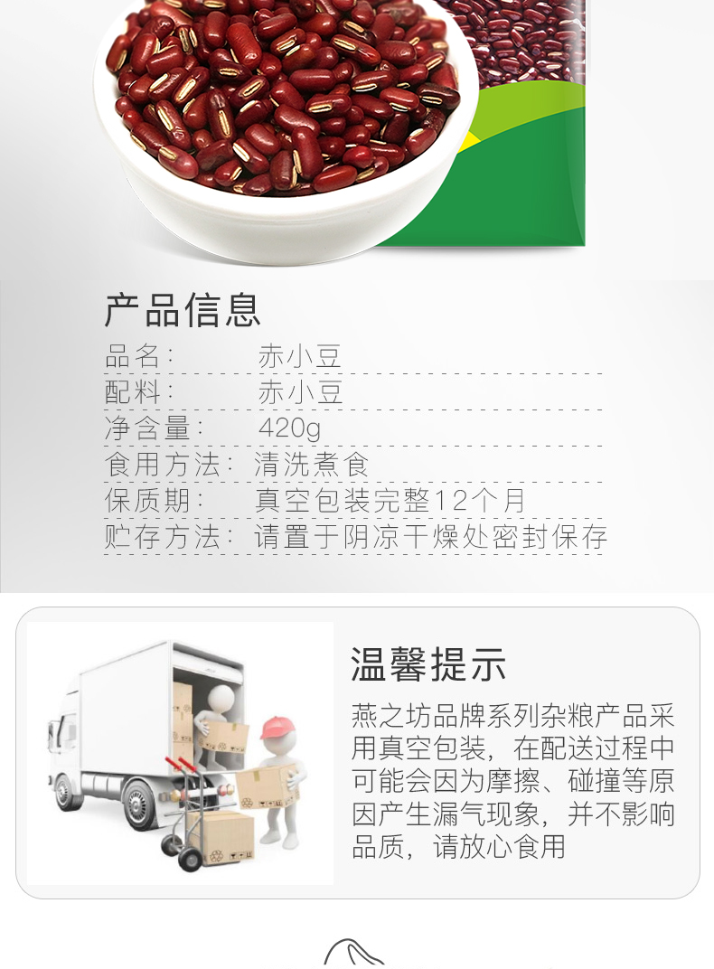 燕之坊 长粒赤小豆420g 广西百色原产 五谷杂粮大豆 可煮赤豆薏米水 煮赤豆粥