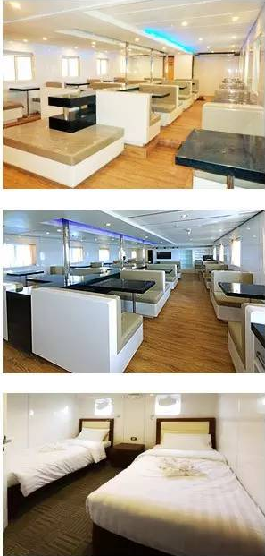 其他设施 | 沙龙/摄影房间,阳光甲板,2个遮阴甲板,甲板就餐区域,甲板吧台 |