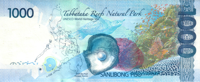 菲律宾1000元比索背面就印的图巴塔哈国家公园地图!