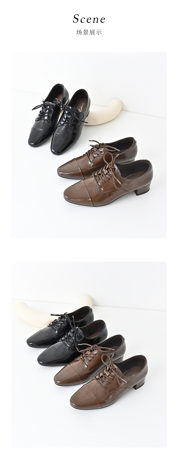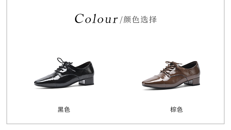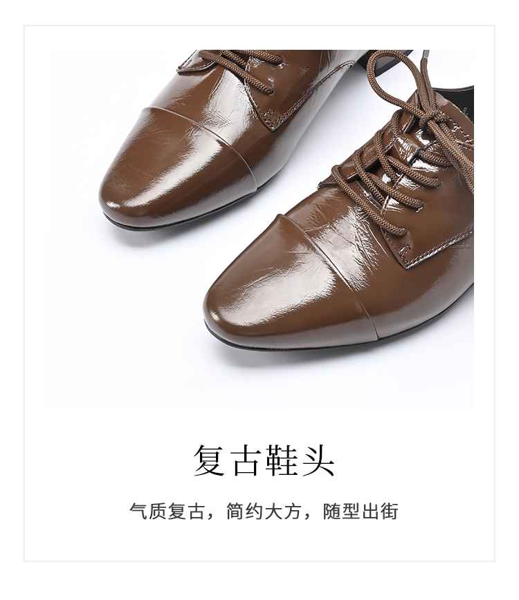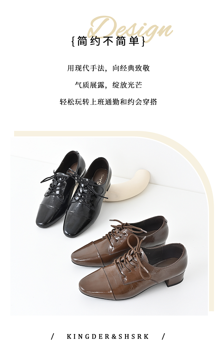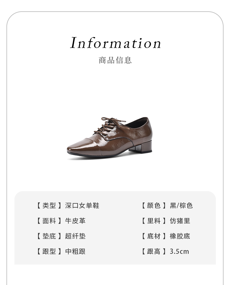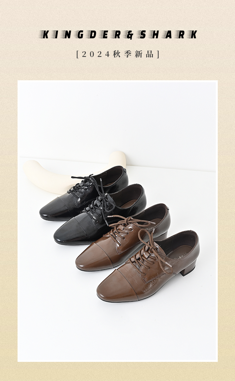 经典鲨2024年秋新款复古小尖头系带中粗跟简约单鞋小皮鞋女KW117-D37151