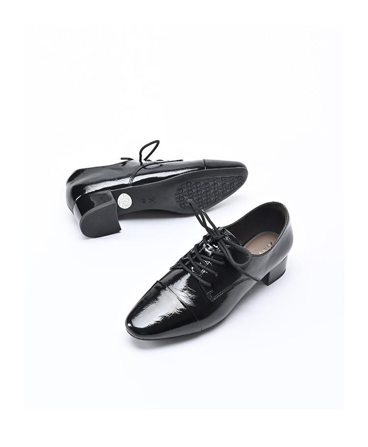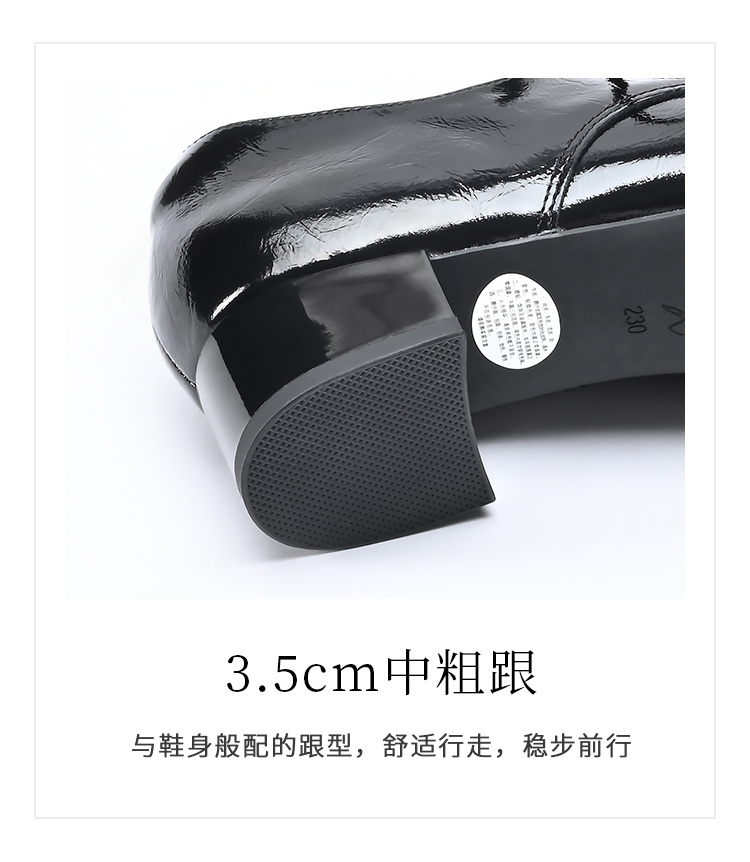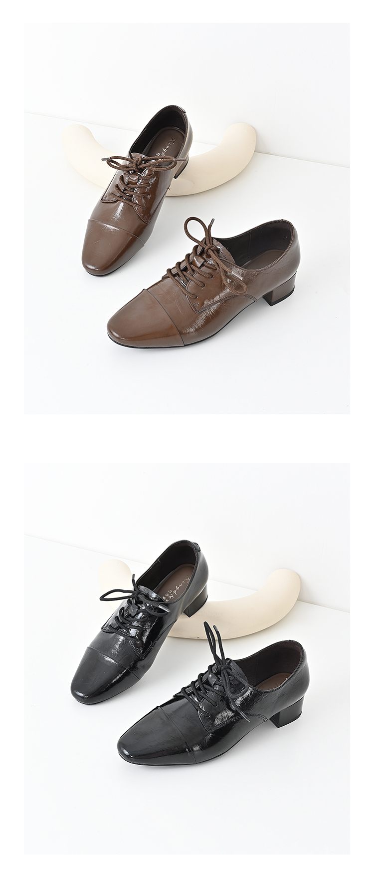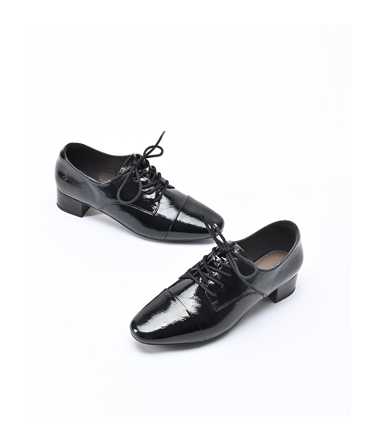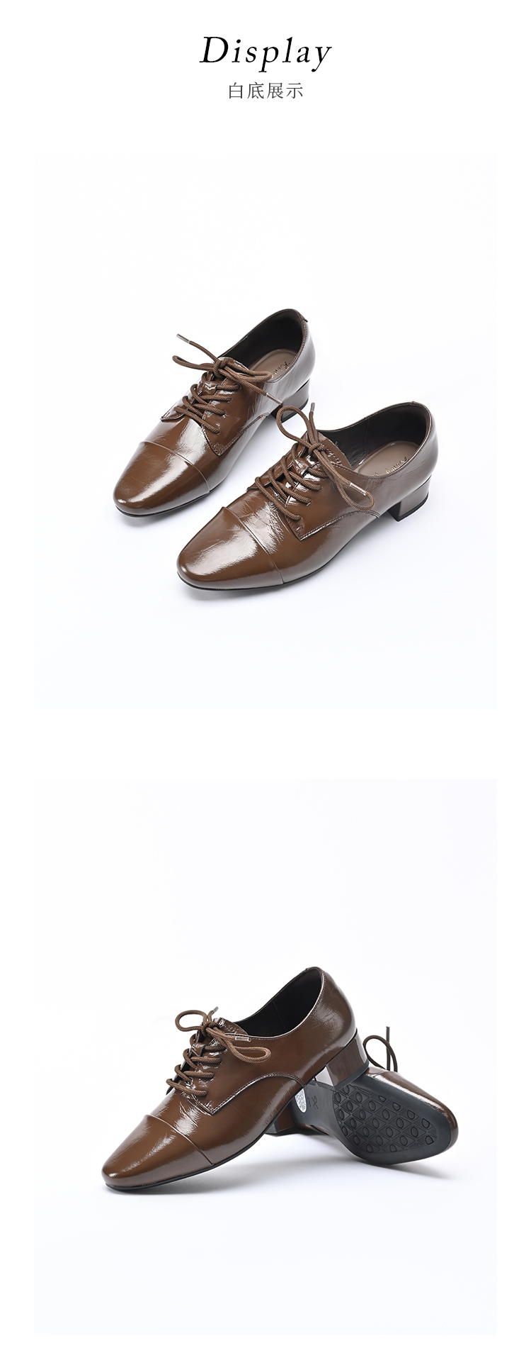 经典鲨2024年秋新款复古小尖头系带中粗跟简约单鞋小皮鞋女KW117-D37151