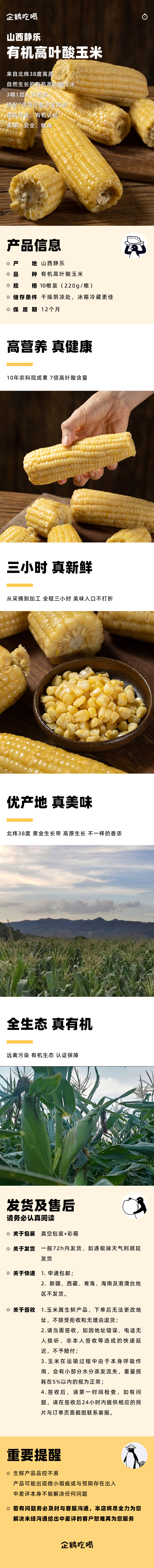 企鹅市集|山西 有机叶酸玉米 10根装(220g*10) 自然生长 3糯1甜 农科院玉米