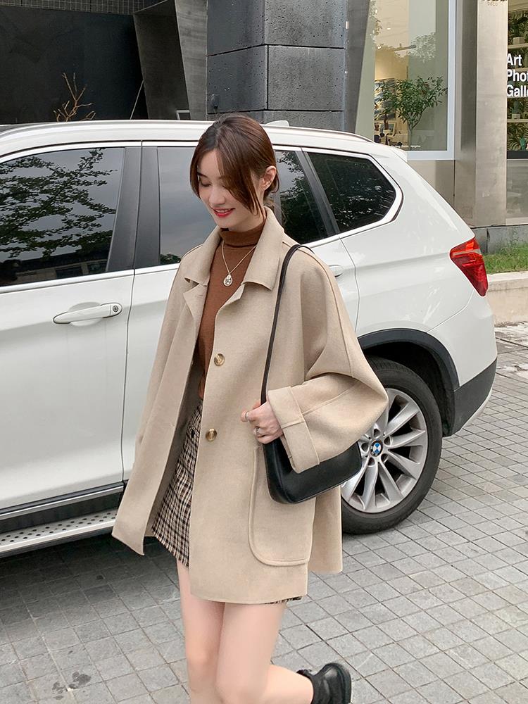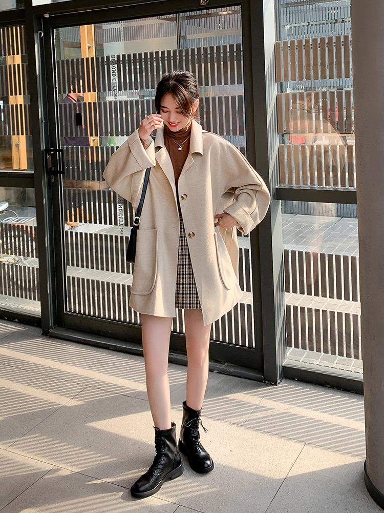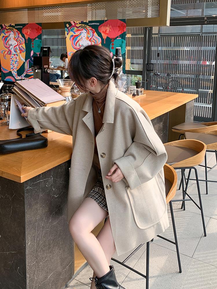 胖mm可穿【时尚大码!毛呢外套中长款】可穿到155斤,学生小个子韩版宽松百搭风衣显瘦大码大衣女式外套上衣