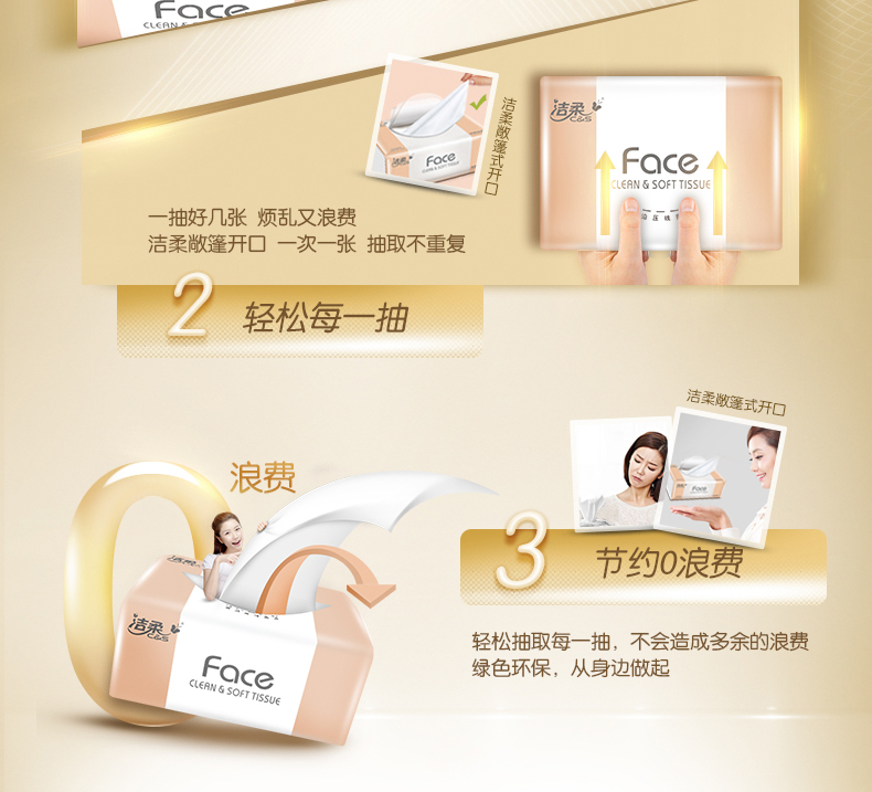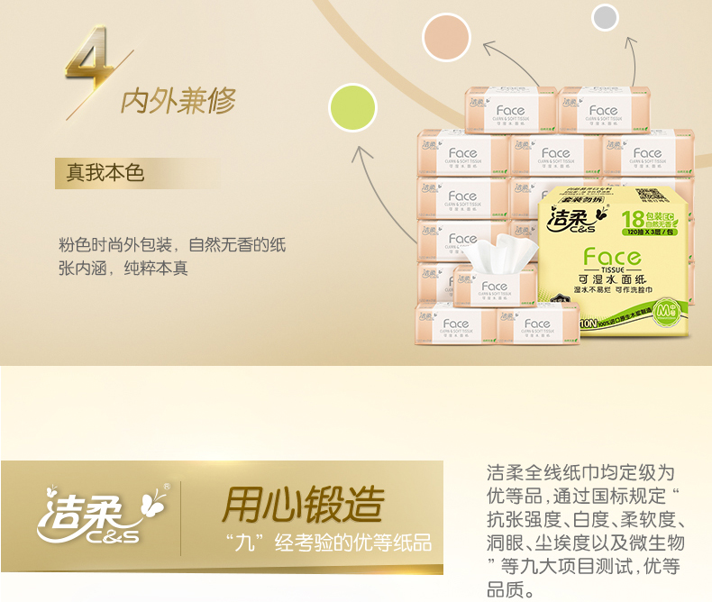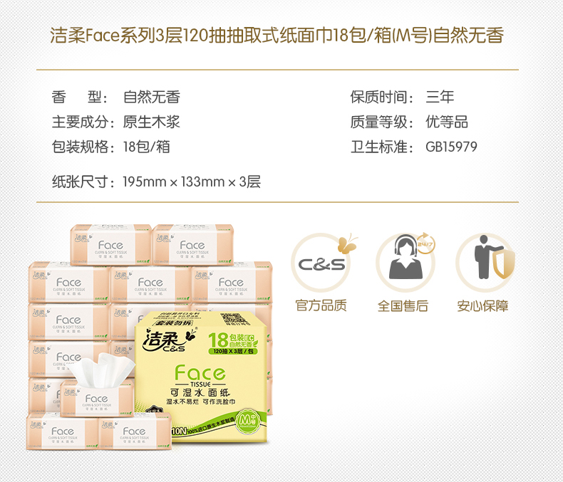 洁柔抽纸巾三层120抽自然无香型抽纸大包抽取式面巾纸整箱3层M码