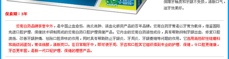 云南白药牙膏 薄荷清爽型 150克
