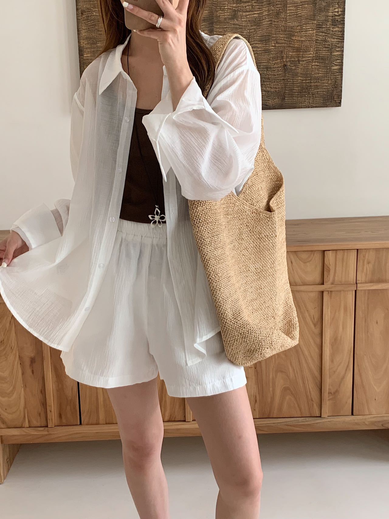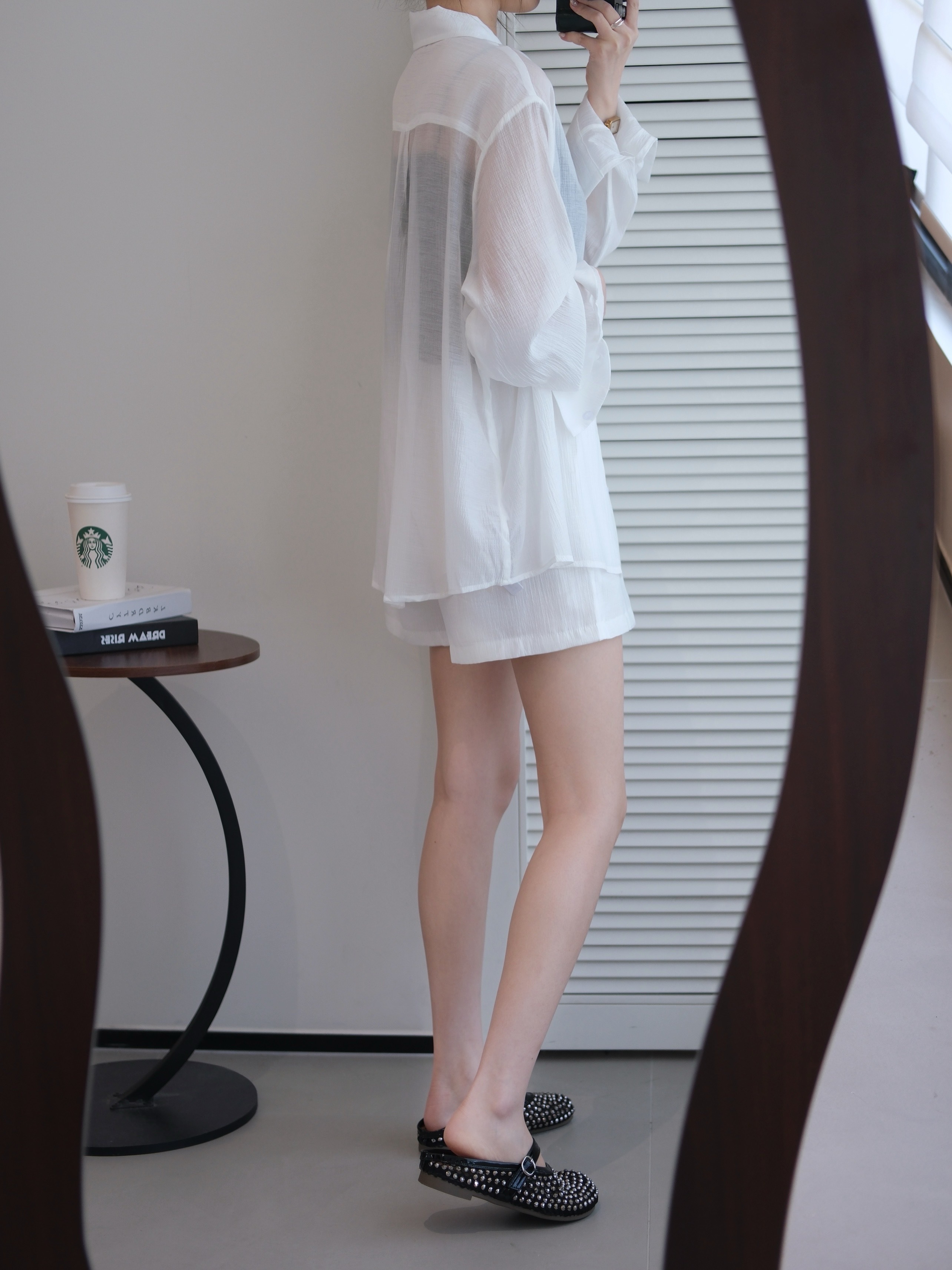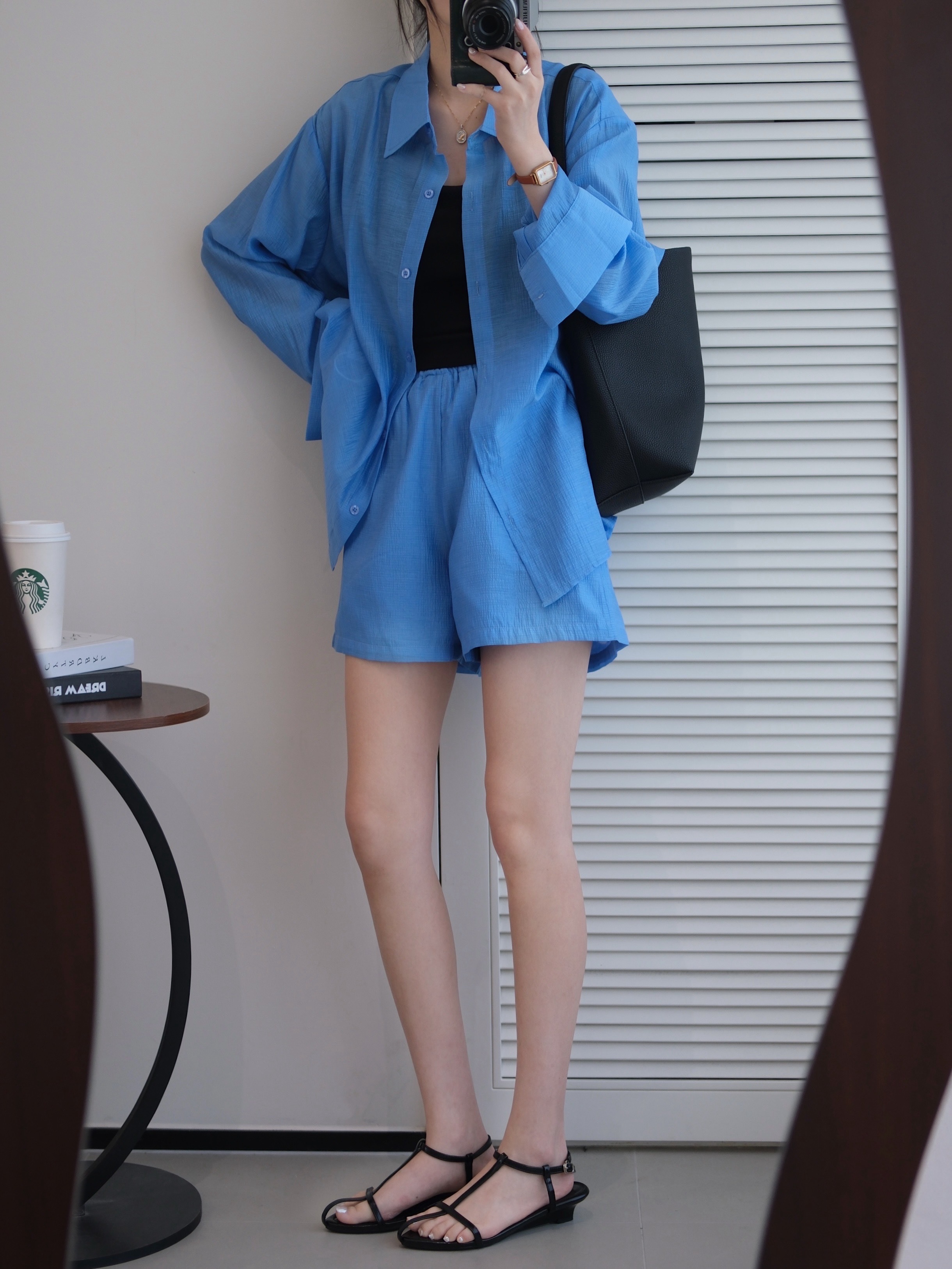 从头到脚的舒适感,面料自带凉肌理感!衬衫+短裤的款式,可以快速出门想偷懒的时候从衣柜拿出这套总是不出错滴!轻轻松松穿出松弛感,轻薄的天然纤维赋予这款绝佳通透性!简直就是人间舒适区!