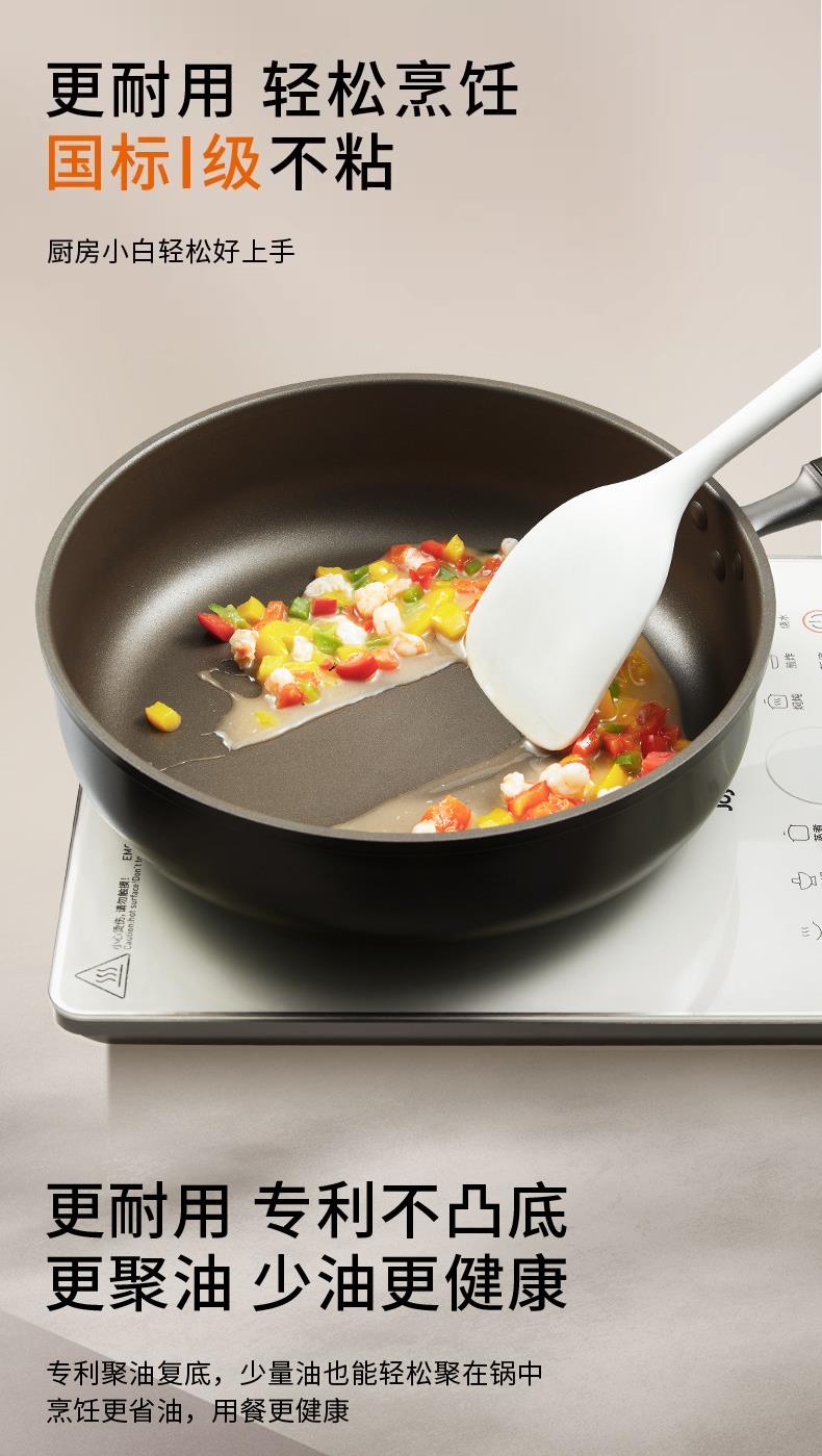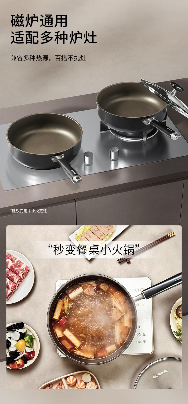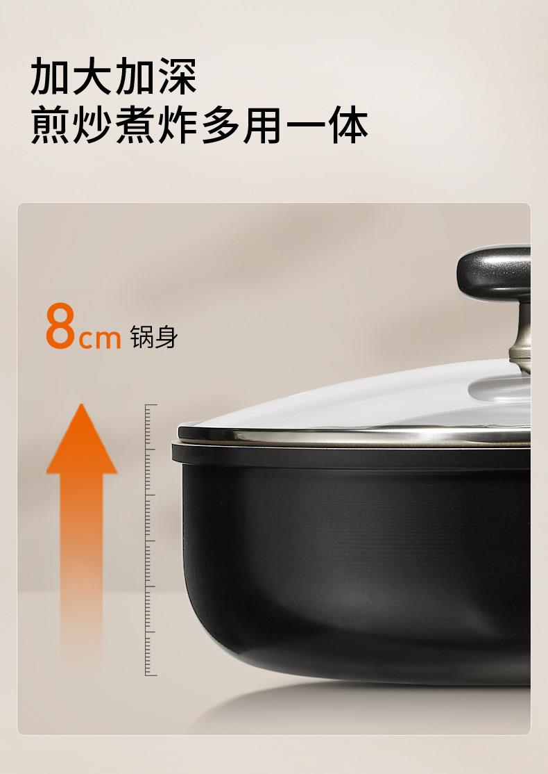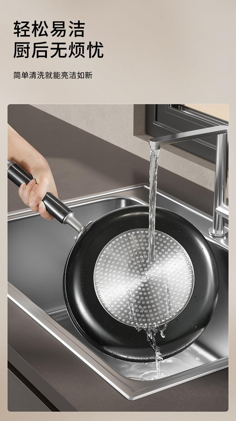 九阳岩钛不粘深煎锅平底锅含钛聚油不粘锅家用煎牛排早餐煎蛋炒锅