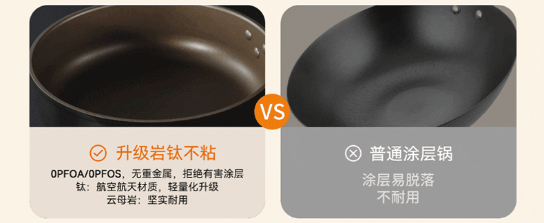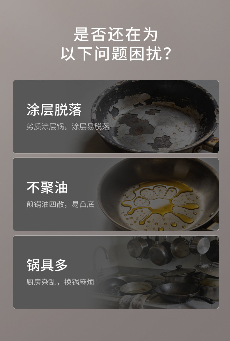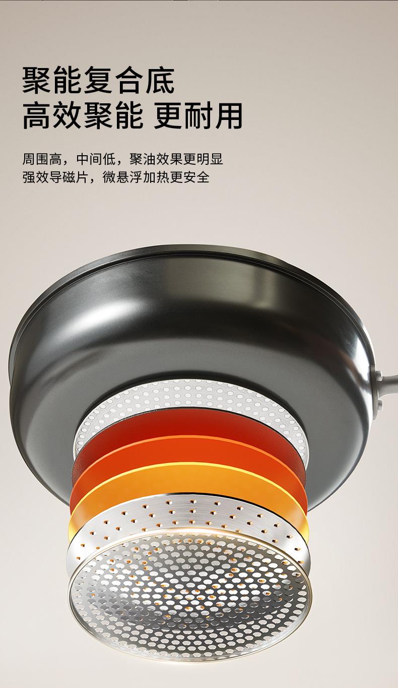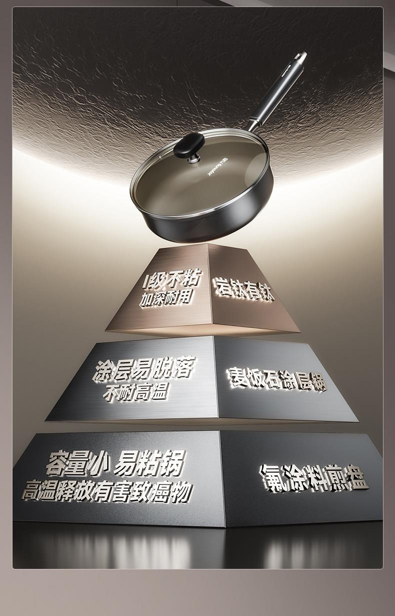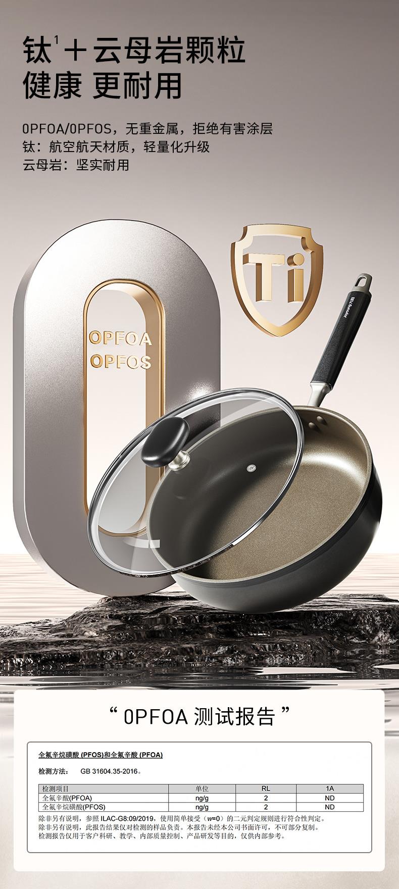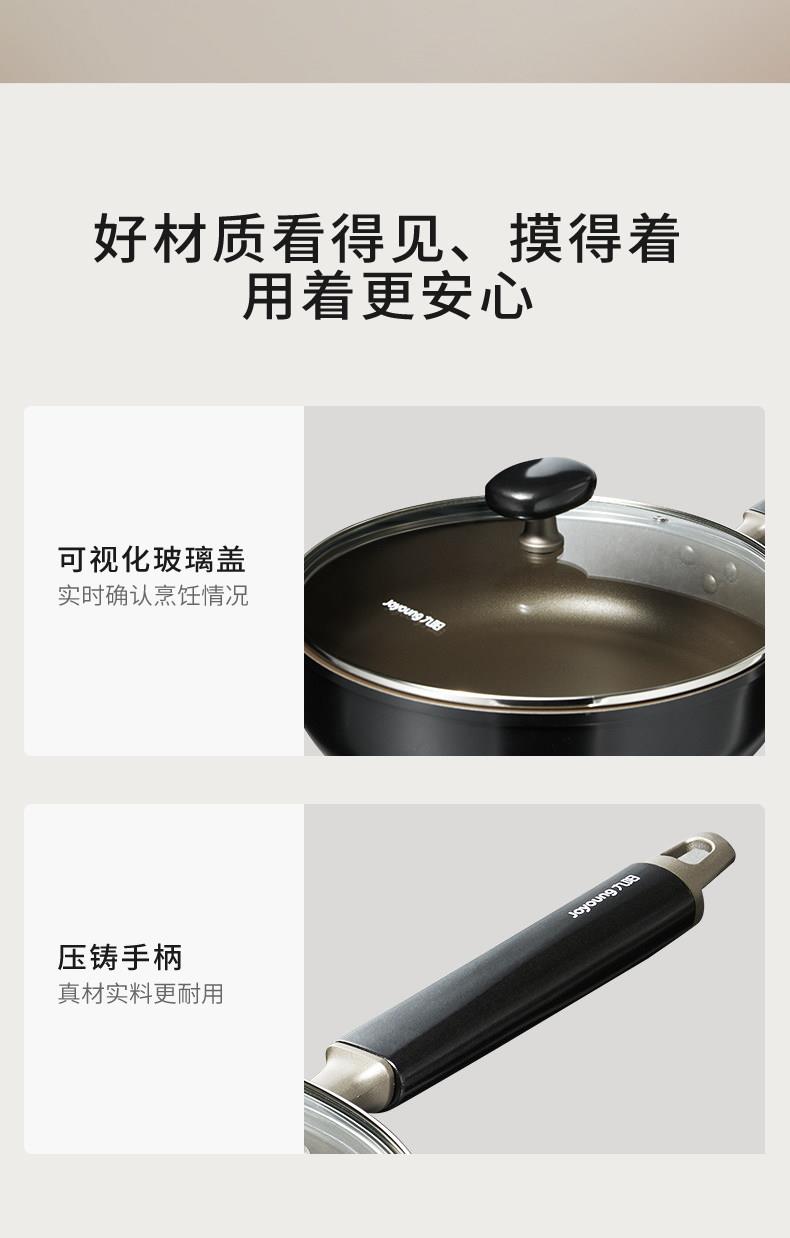 九阳岩钛不粘深煎锅平底锅含钛聚油不粘锅家用煎牛排早餐煎蛋炒锅