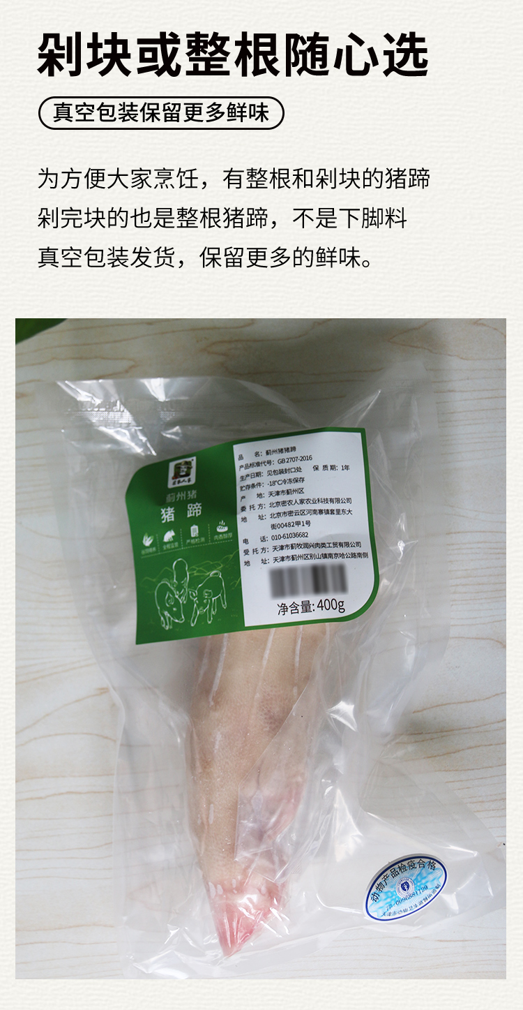 【包邮】安心猪蹄 粮食喂养 整只带筋前蹄 急冻锁鲜 满口肉香 400g*3只/400g*5只