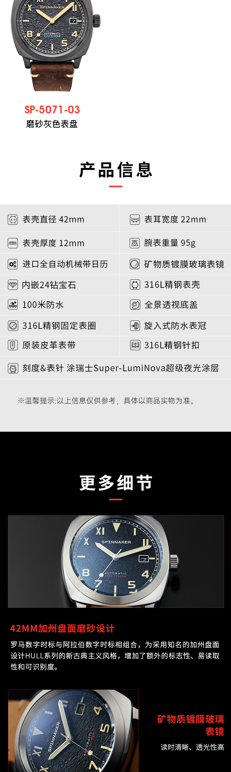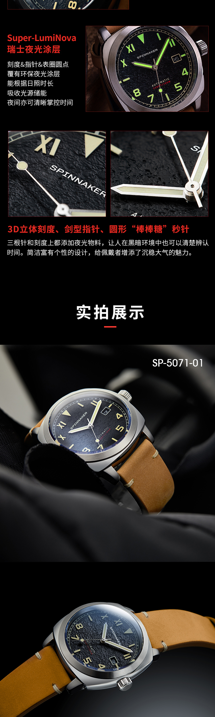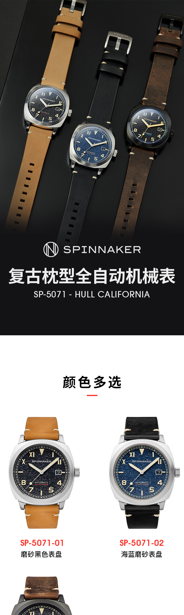 英国SPINNAKER三角帆HULL加州面自动机械潜水手表夜光水鬼SP5071
