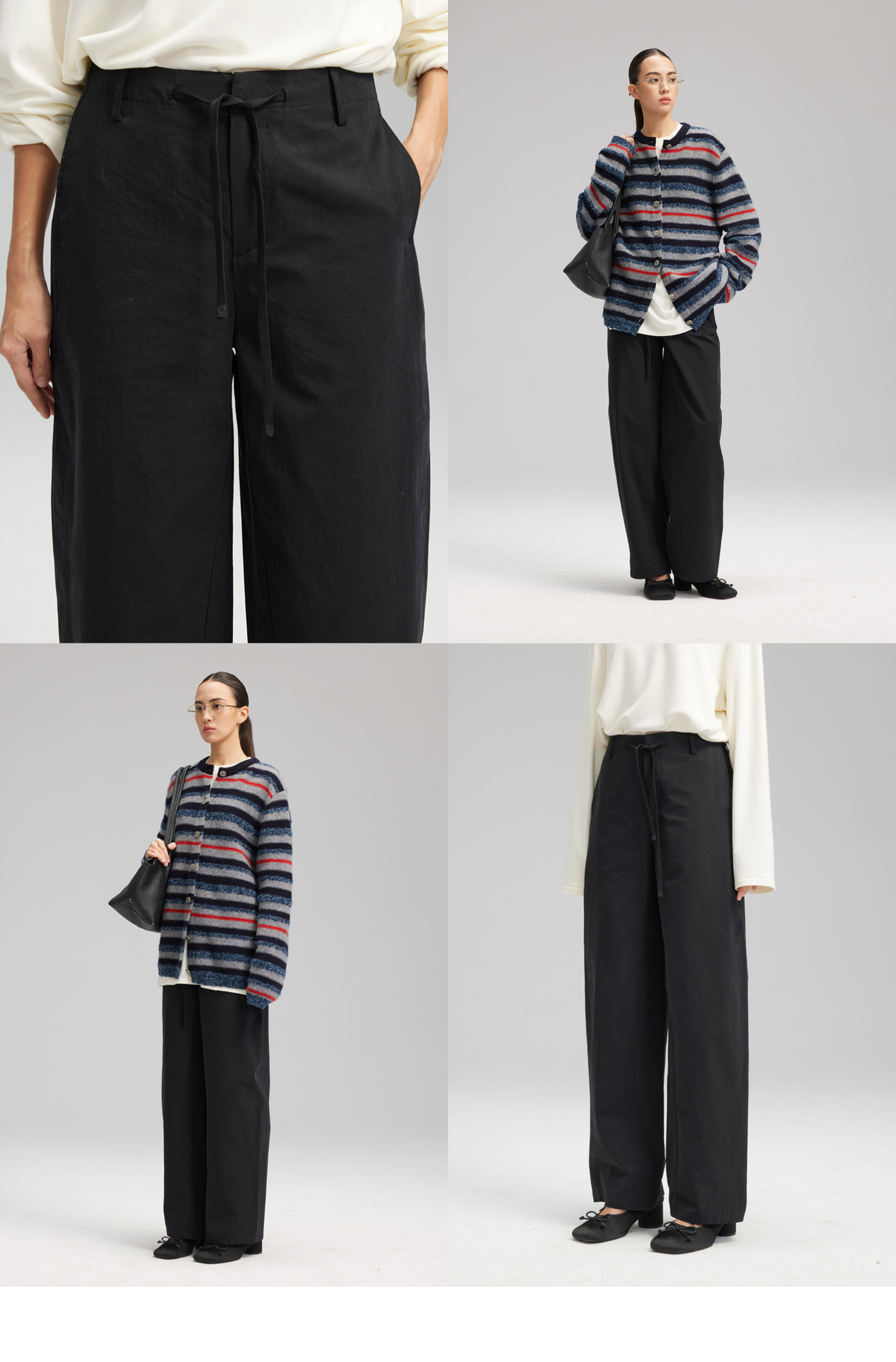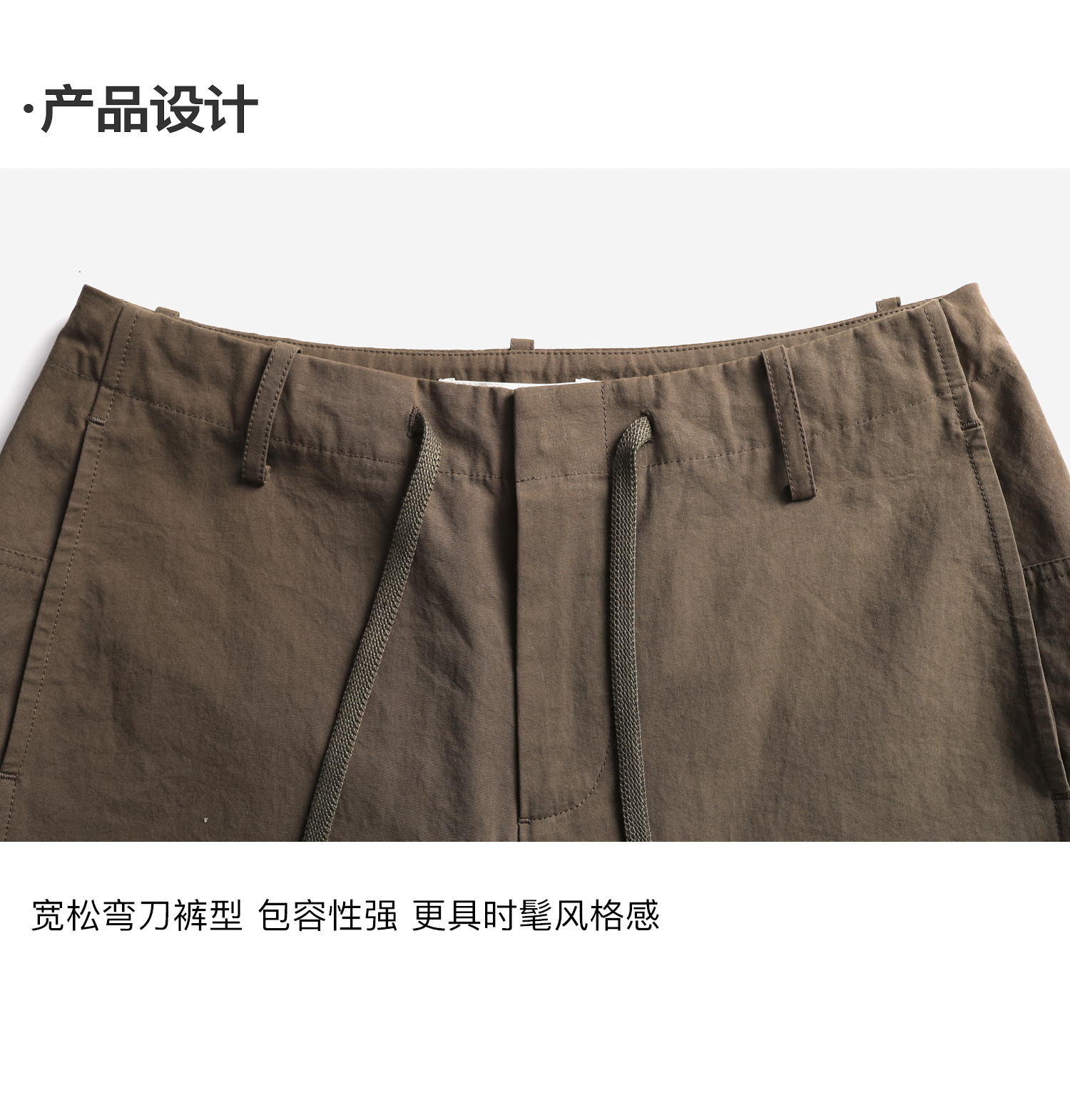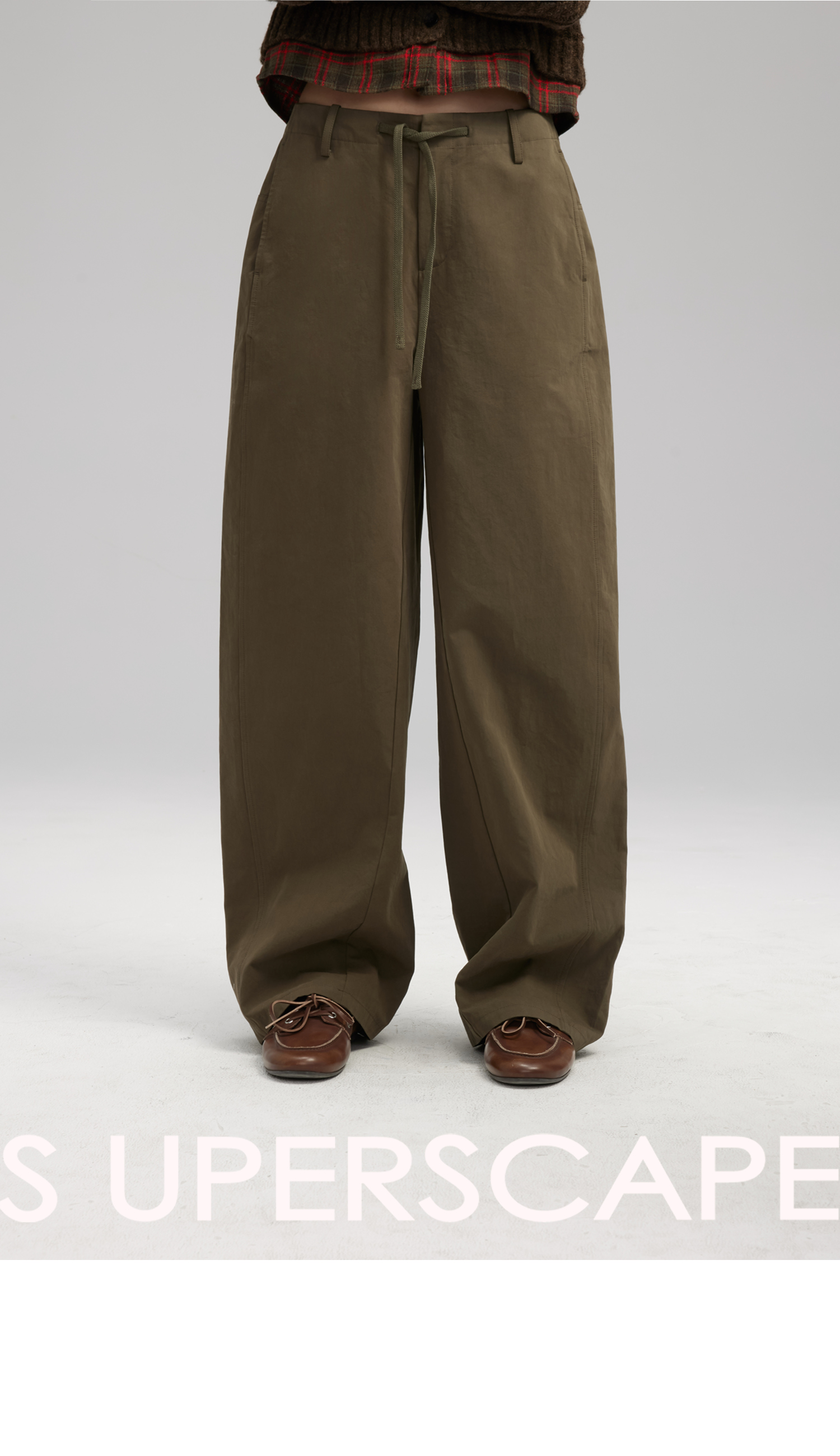 素舶 匹马棉长绒棉解构分割抽绳弧形修饰腿型宽松显瘦弯刀休闲裤
