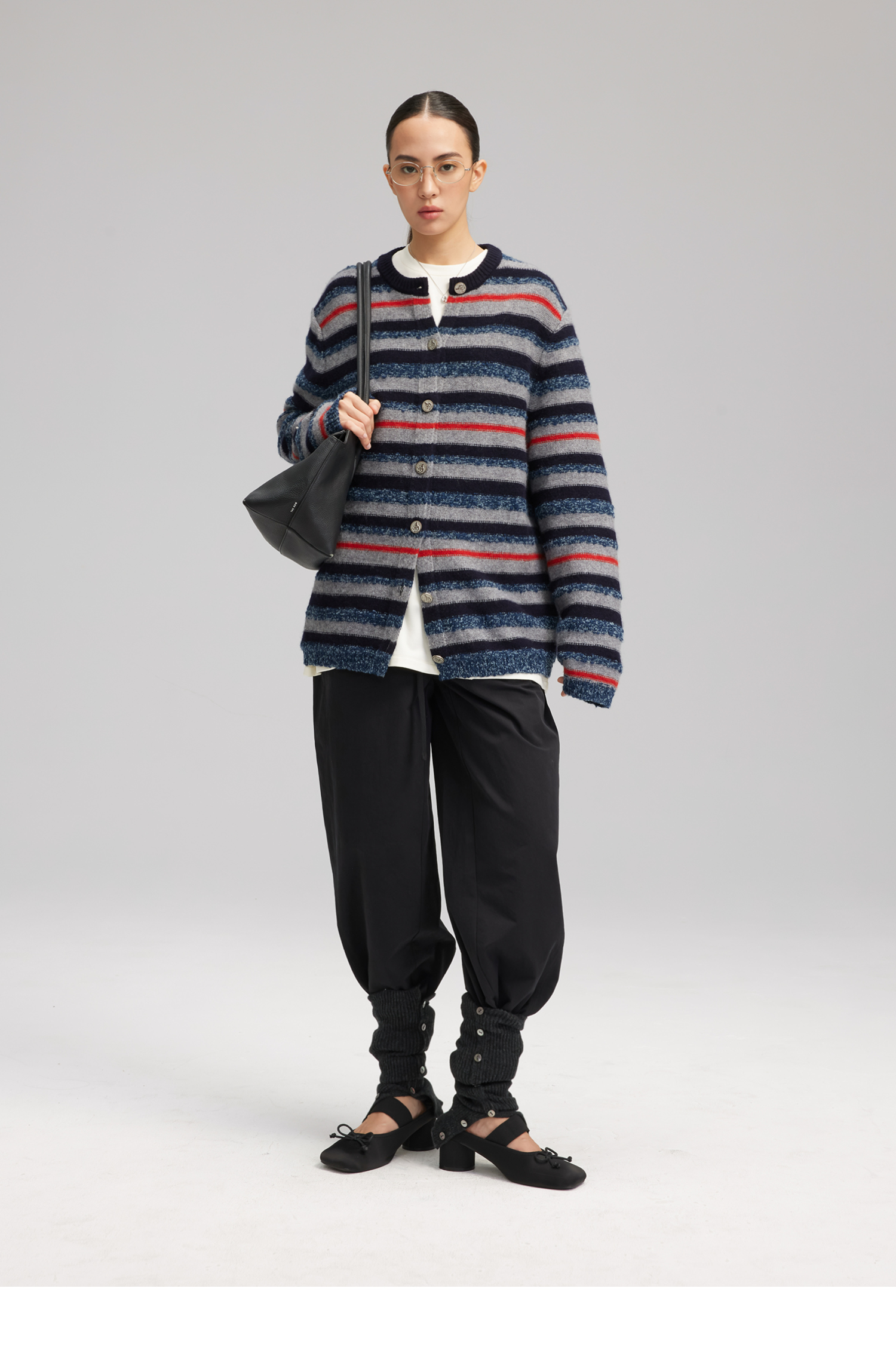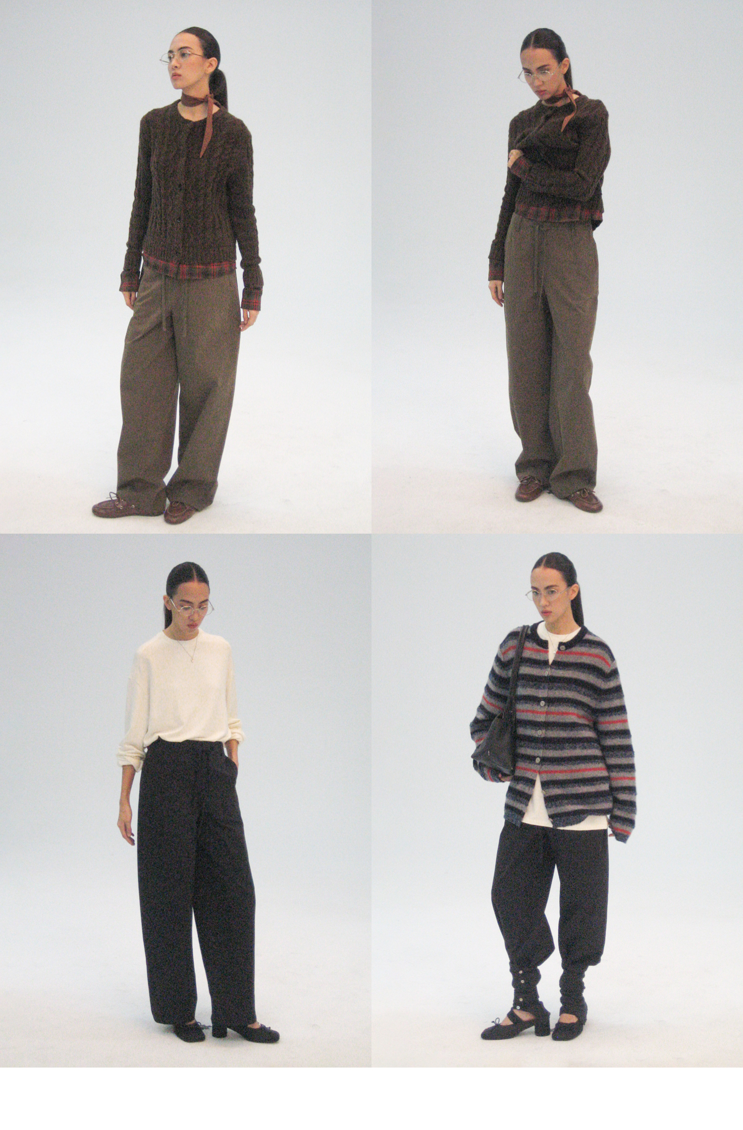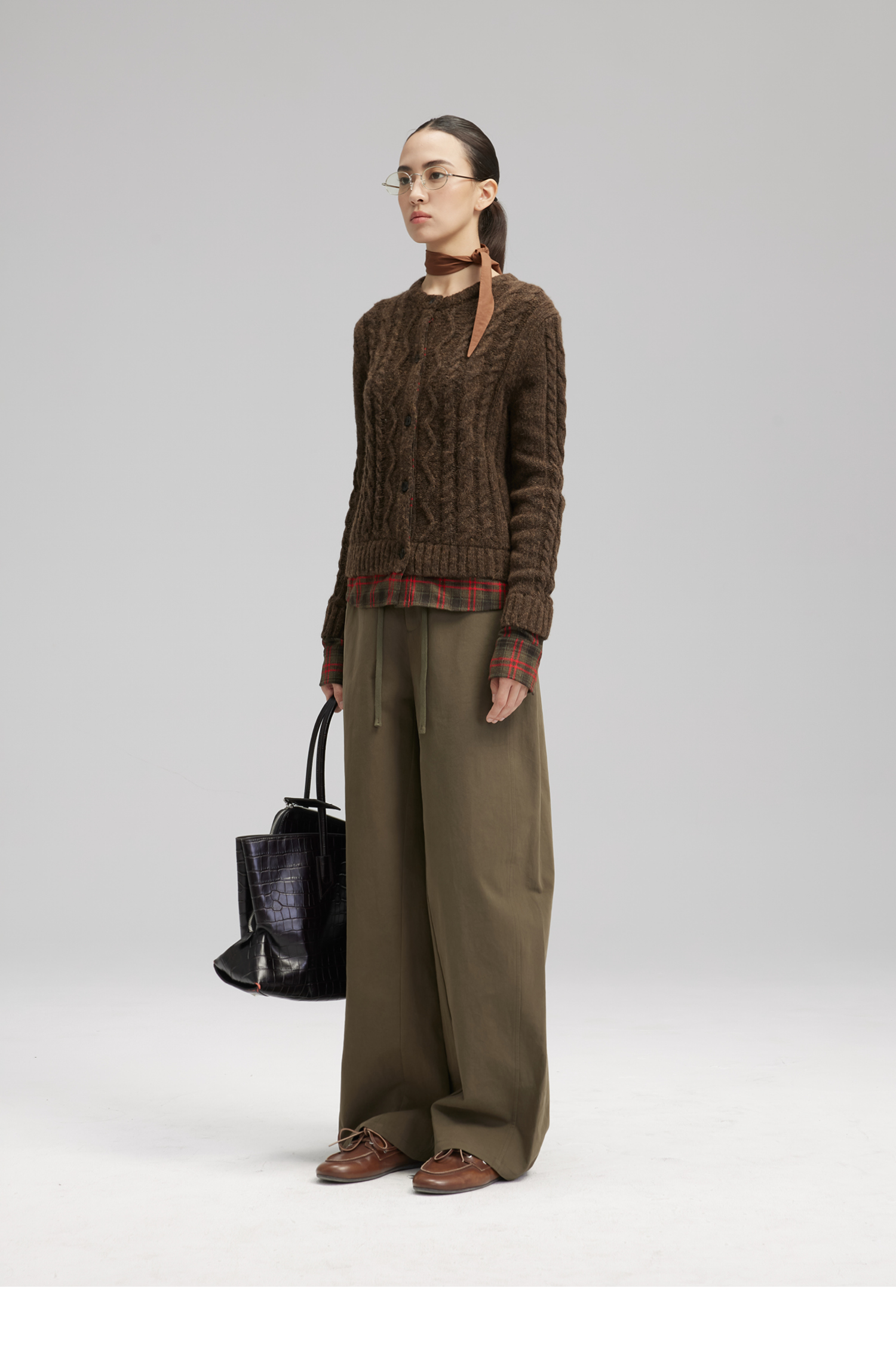 素舶 匹马棉长绒棉解构分割抽绳弧形修饰腿型宽松显瘦弯刀休闲裤