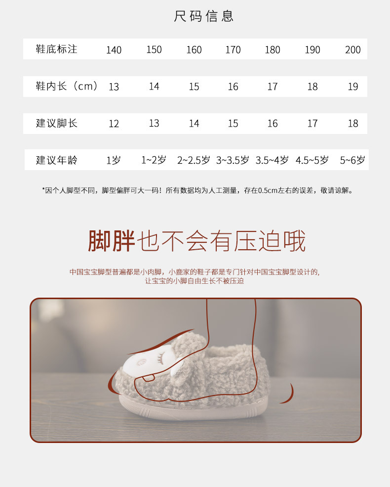 【防滑防撞 让宝宝放心行走】小鹿米利 儿童棉拖鞋男女童秋冬室内1-3岁宝宝儿童棉鞋毛毛鞋可爱
