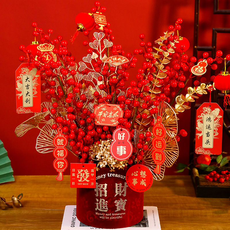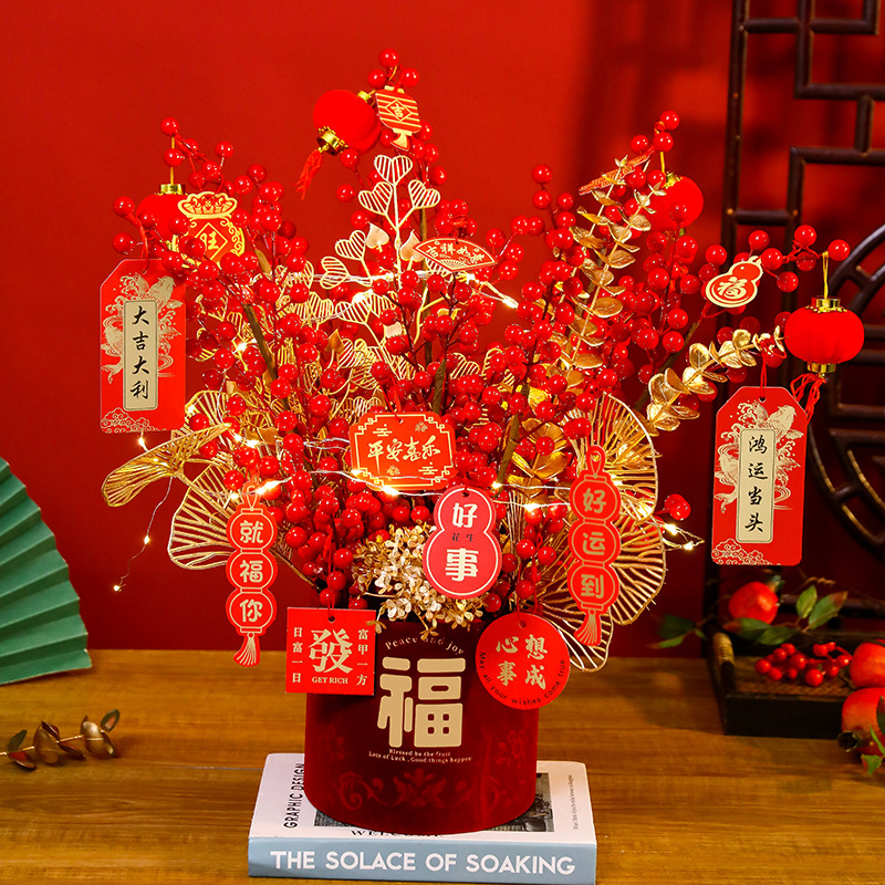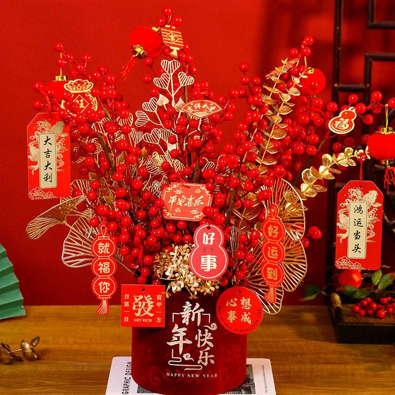 【新年摆件福桶】年宵花套装发财红果春节装饰