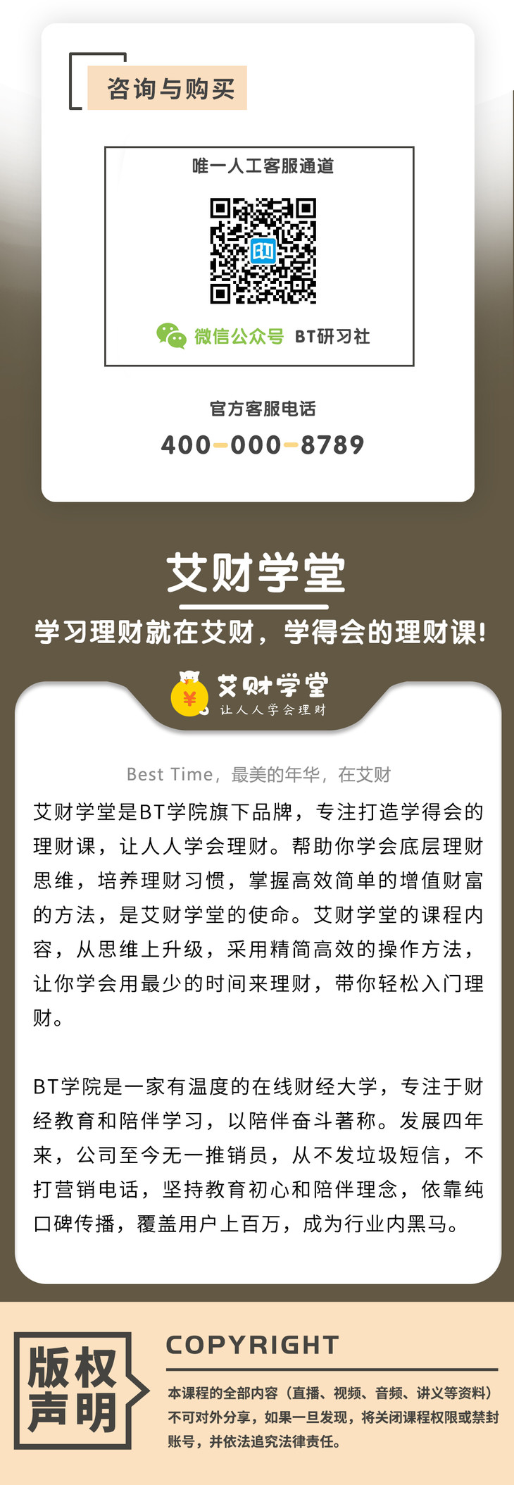 购买课程后,请务必关注「艾财学堂服务号」,扫码下方二维码或回复【班主任】进群学习。