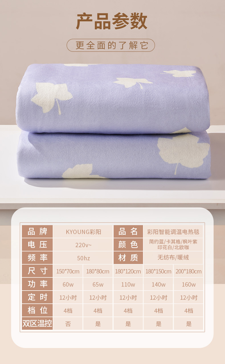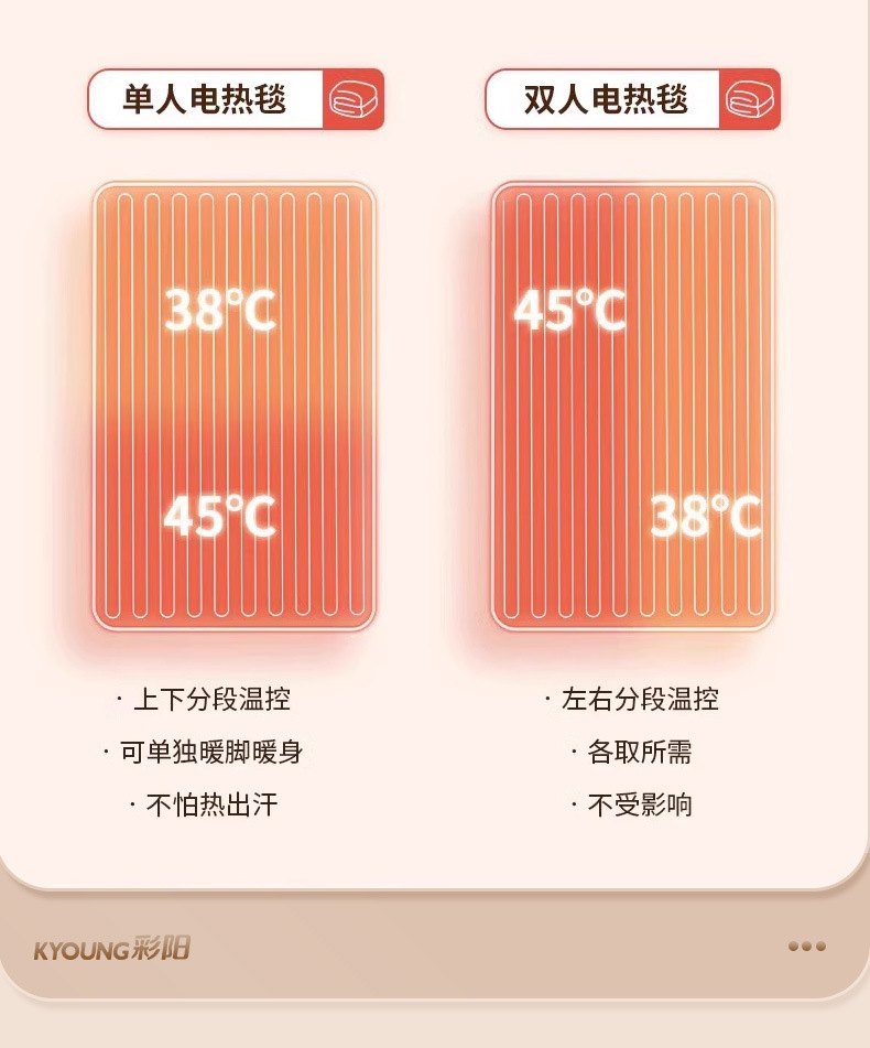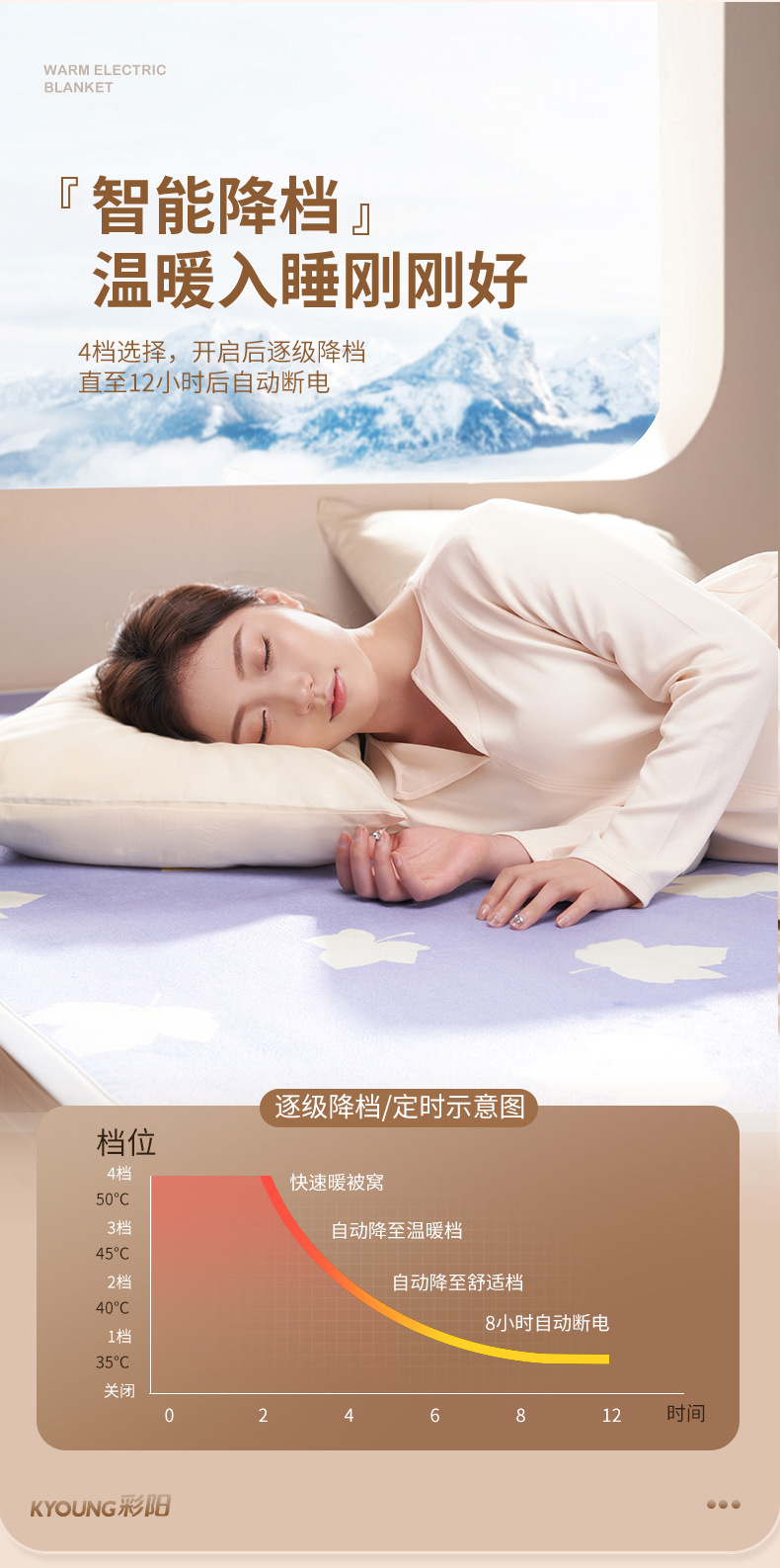 【温暖入睡❗️彩阳可水洗&电热毯】四层锁温技术,内部热传导形成循环暖流,供暖均匀持久,单人调温电加热垫宿舍毛毯双人毯