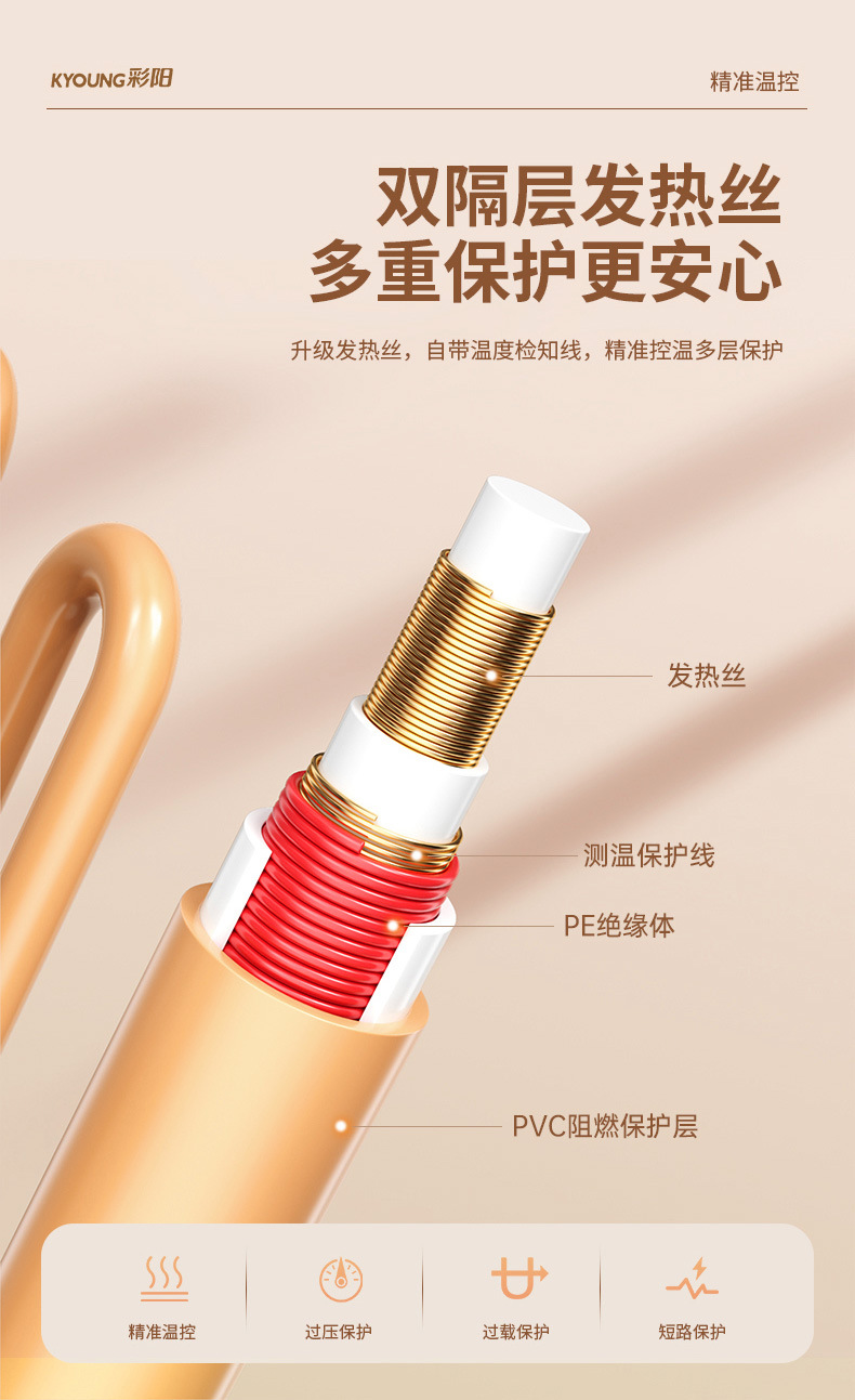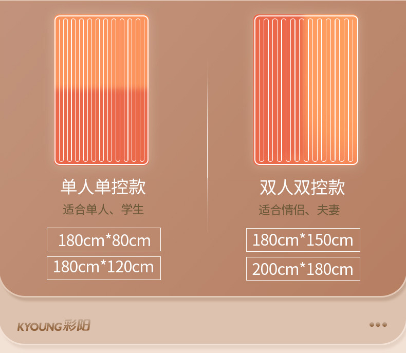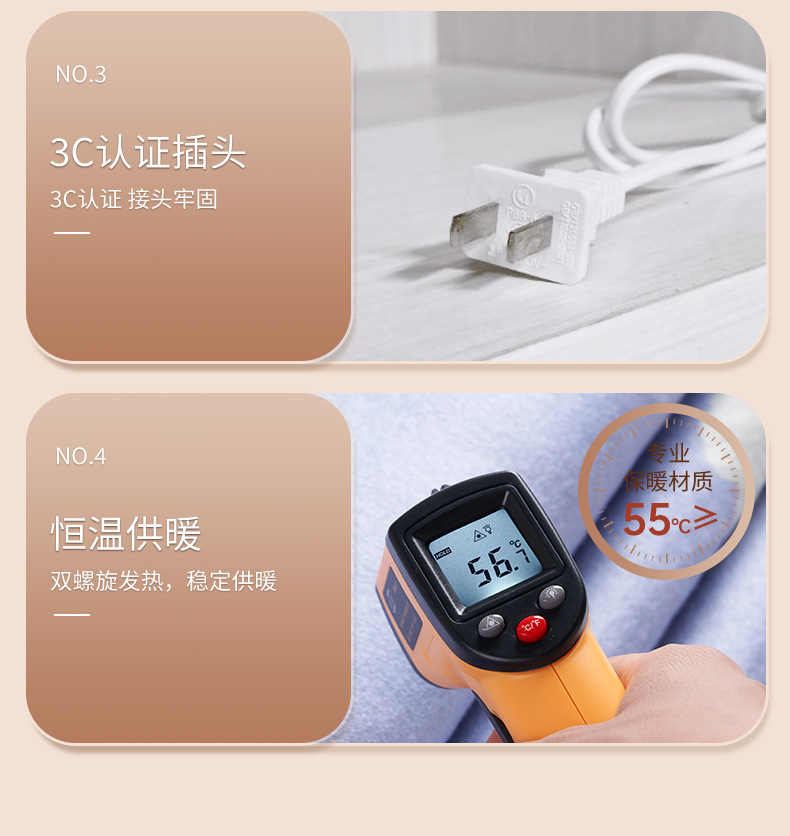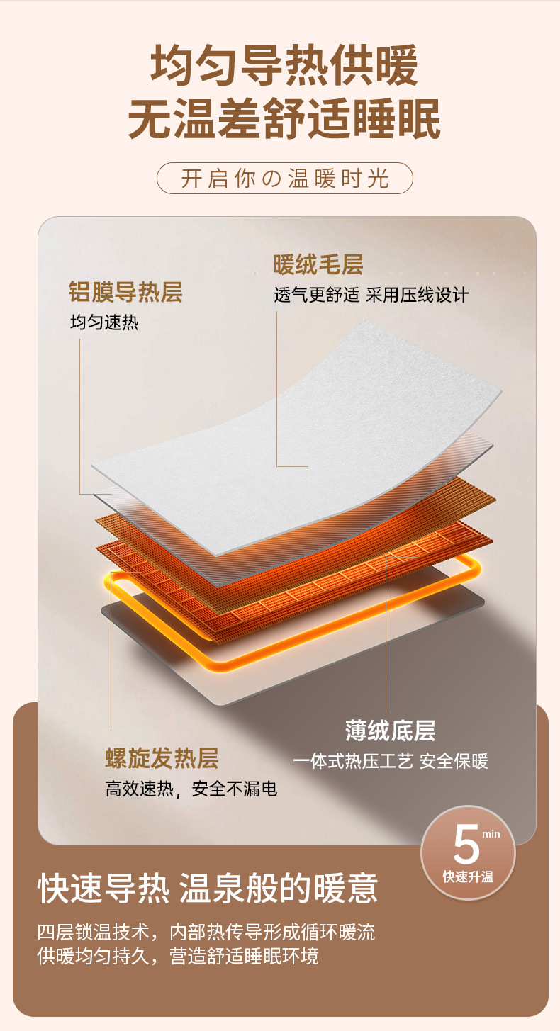 【温暖入睡❗️彩阳可水洗&电热毯】四层锁温技术,内部热传导形成循环暖流,供暖均匀持久,单人调温电加热垫宿舍毛毯双人毯