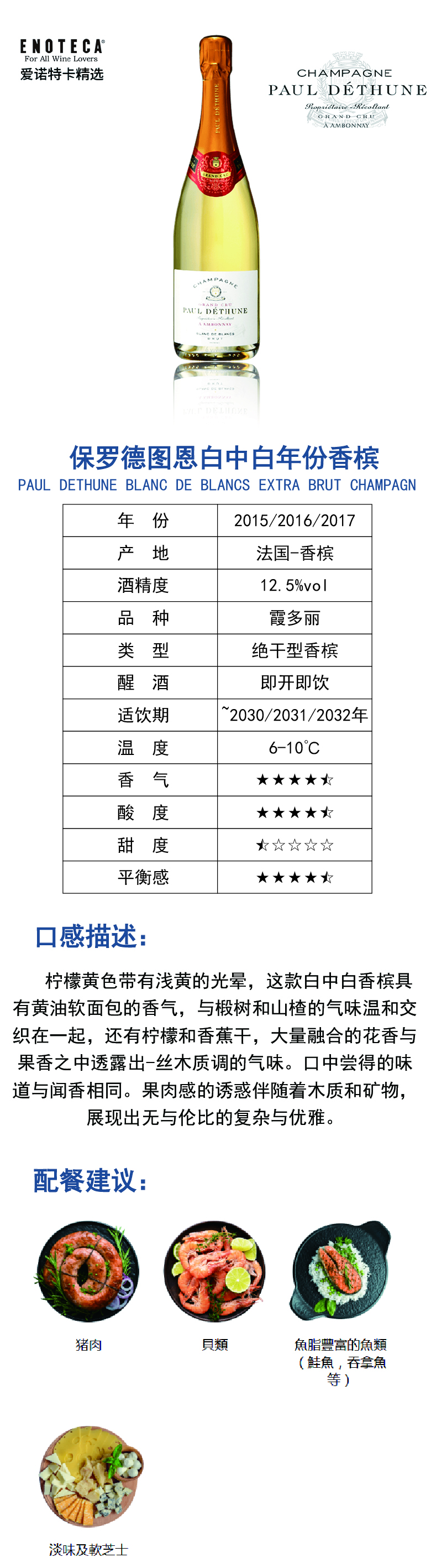 保罗德图恩白中白年份香槟 750ml 2015/2016/2017