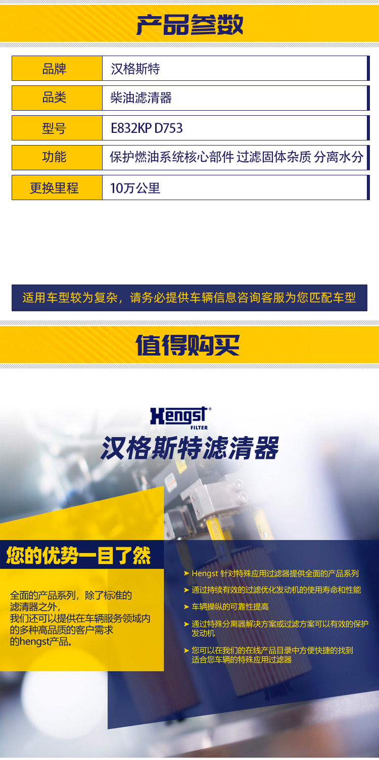 汉格斯特柴油滤清器重汽加装大炮总成滤芯 10万公里 FS20190 D753