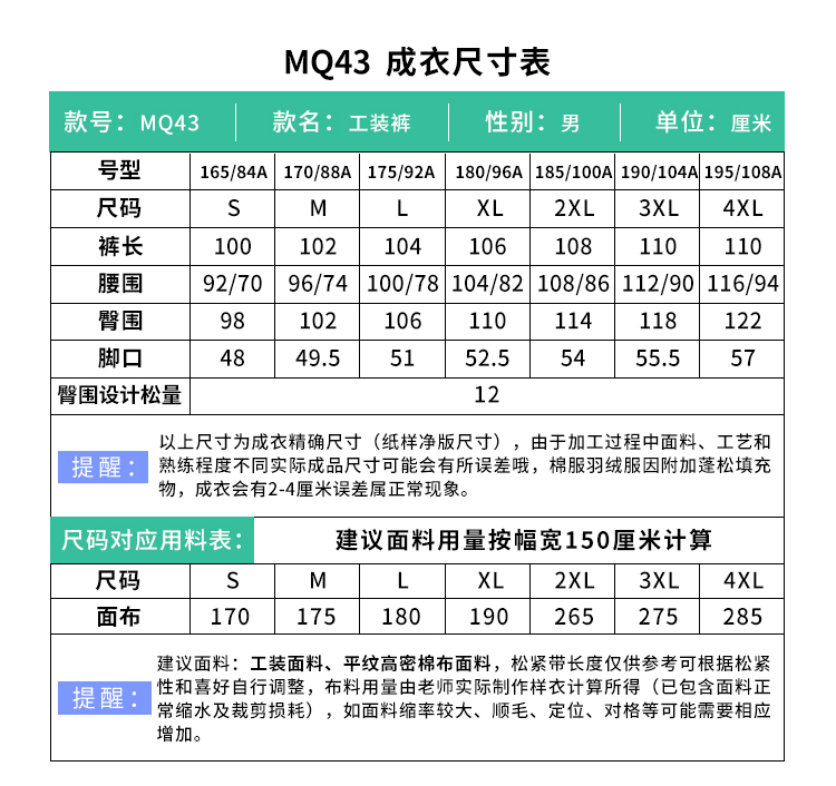 裁缝学苑MQ43新款美式伞兵工装裤纸样男装宽松褶皱直筒长裤子版型图