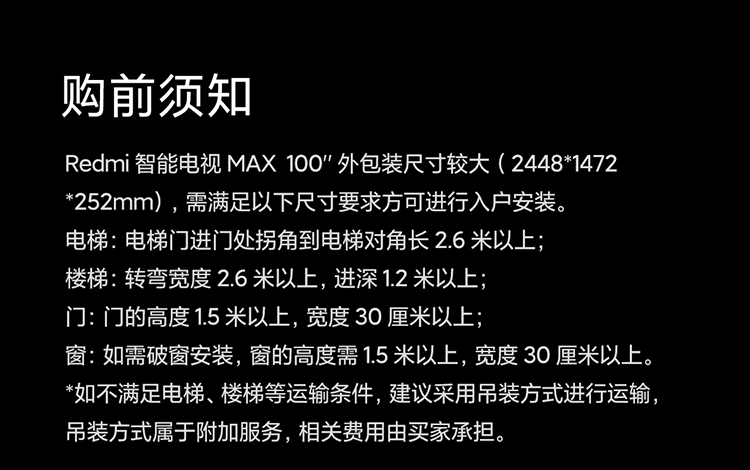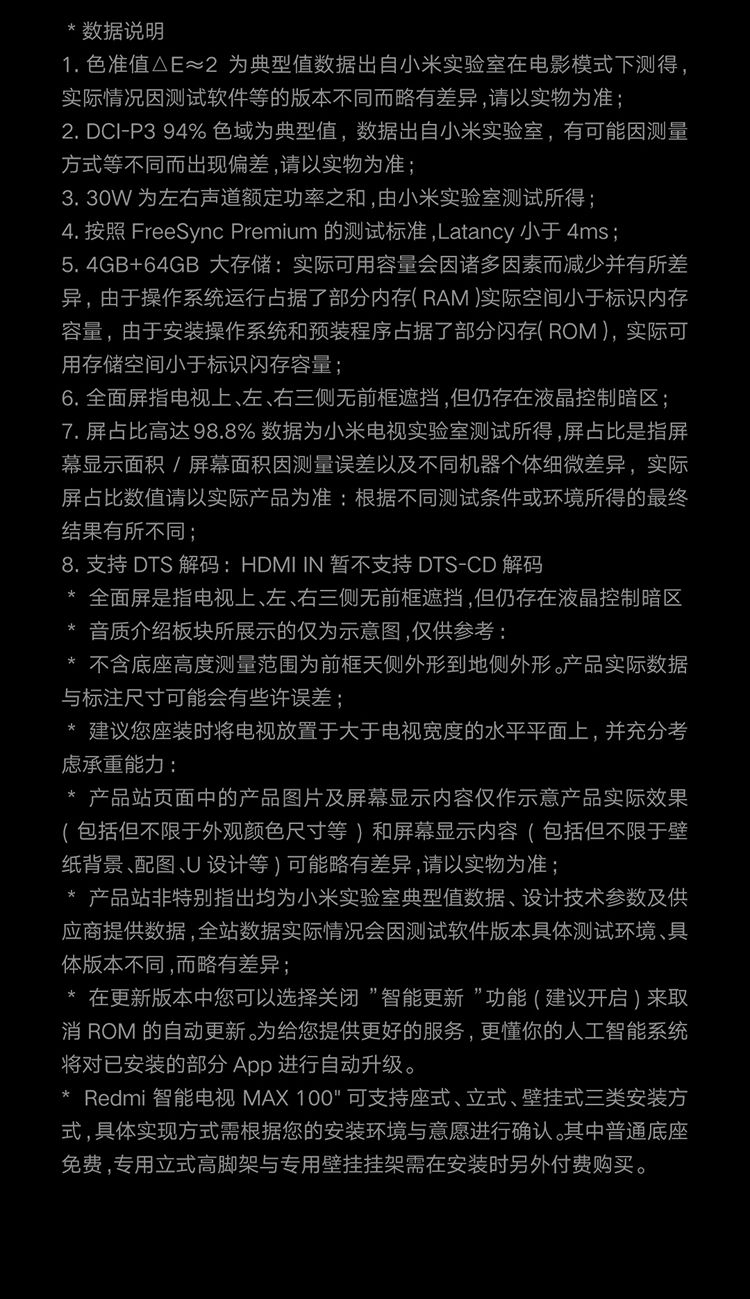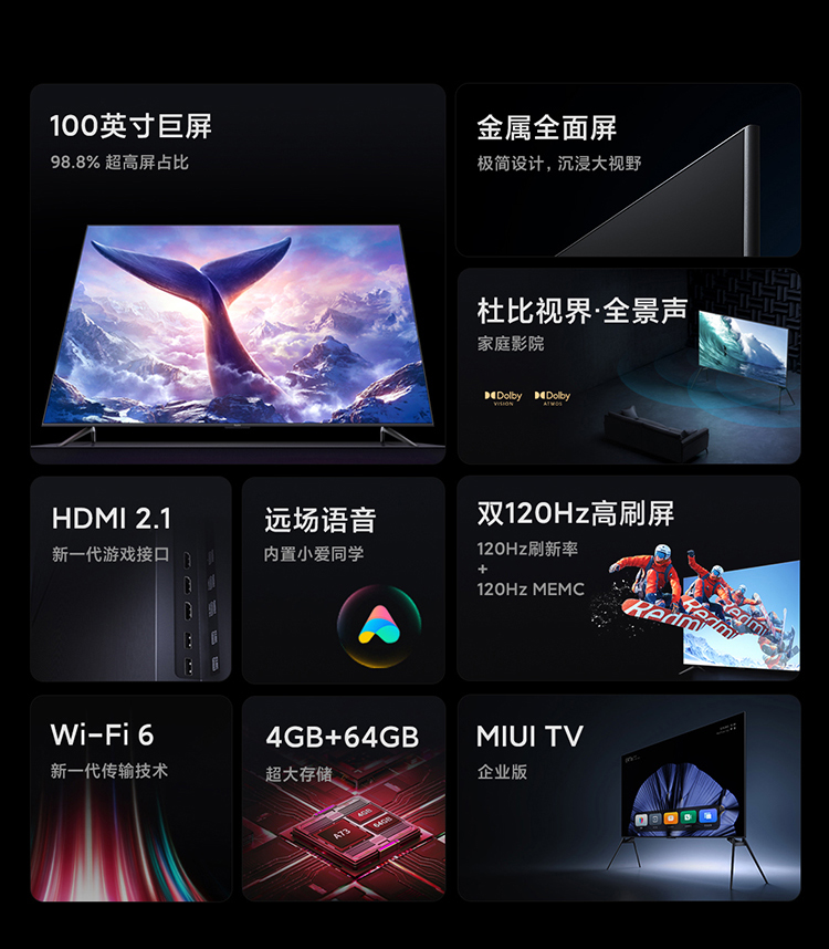 【小米】小米电视 Redmi MAX 100英寸巨屏 金属全面屏 120Hz高刷 HDR超高清 MEMC运动补偿L100R8-MAX