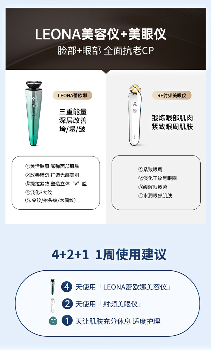 预售7.13发货,贝米诗LEONA美容仪套装脸部提拉紧致淡化法令纹眼袋细纹美眼仪